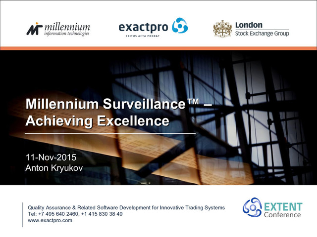 11-Nov-2015 Anton Kryukov Quality Assurance & Related Software Development for Innovative Trading Systems Tel: +7 495 640 2460, +1 415 830 38 49 www.exactpro.com