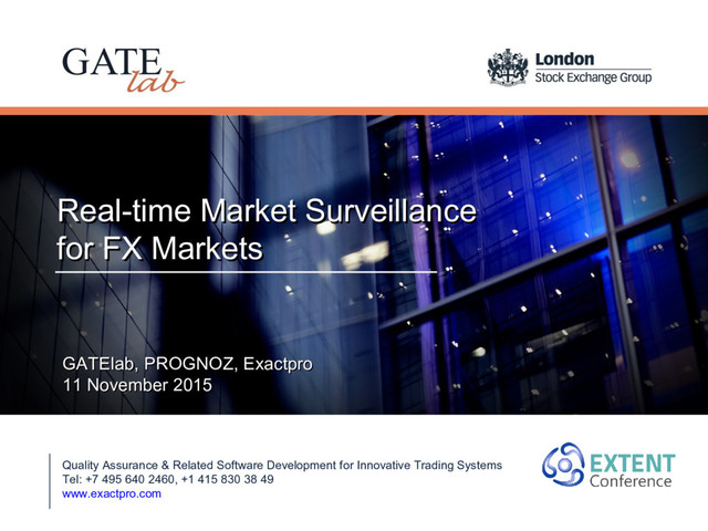 FX Markets Quality Assurance & Related Software Development for Innovative Trading Systems Tel: +7 495 640 2460, +1 415 830 38 49 www.exactpro.com GATElab, PROGNOZ, Exactpro GATElab, PROGNOZ, Exactpro 11 November 2015 11 November 2015