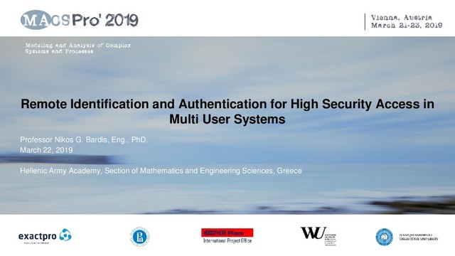 efficiency of the remote user authentication in integrated systems." Trends in Computer Science 12.1 (2003): 99-107. 2. Bardis, Nikolaos G., et al. "Two level efficient user authentication scheme." 4th IEEE International Conference on Digital Ecosystems and Technologies. IEEE, 2010. 3. Stavroulakis, P., Markovskyi, O. P., Bardis, N. G., & Doukas, N. (2011, December). Efficient zero—Knowledge identification based on one way Boolean transformations. In 2011 IEEE GLOBECOM Workshops (GC Wkshps) (pp. 275-280). IEEE. 4. Bardis, N. G., Markovskyi, O. P., Doukas, N., & Drigas, A. (2012, October). Fast implementation zero knowledge identification schemes using the Galois Fields arithmetic. In 2012 IX International Symposium on Telecommunications (BIHTEL) (pp. 1-6). IEEE. 5. Doukas, Nikolaos, Nikolaos Bardis, and Oleksandr P. Markovskyi. "Authentication and Integrity in Streaming Video Transmission." Mathematics and Computers in Science and Engineering Series 12 (2013). 6. Doukas, N., Drigas, A., Bardis, N. G., & Karadimas, N. V. (2013). Accessible secure information society applications via the use of optimised cryptographic calculations. Journal of Applied Mathematics and Bioinformatics, 3(4), 181. 7. Bardis, Nikolaos. "Secure, green implementation of modular arithmetic operations for IoT and cloud applications." Green IT Engineering: Components, Networks and Systems Implementation. Springer, Cham, 2017. 43-64. 8. Kolisnyk, M., Kharchenko, V., Piskachova, I., & Bardis, N. G. (2017). A Markov Model of IoT System Availability Considering DDoS Attacks and Energy Modes of Server and Router. In ICTERI (pp. 699-712). 9. Bardis, Nikolaos G., Nikolaos Doukas, and Oleksandr P. Markovskyi. "Zero-Knowledge Identification Method Based on Block Ciphers." 2017 International Conference on Control, Artificial Intelligence, Robotics & Optimization (ICCAIRO). IEEE, 2017. 10. Stavroulakis, P., Kolisnyk, M., Kharchenko, V., Doukas, N., Markovskyi, O. P., & Bardis, N. G. (2017, July). Reliability, Fault Tolerance and Other Critical Components for Survivability in Information Warfare. In International Conference on E-Business and Telecommunications (pp. 346-370). Springer, Cham. 11. Doukas, Nikolaos, Oleksandr P. Markovskyi, and Nikolaos G. Bardis. "Reliability, Fault Tolerance and Other Critical Components for Survivability in Information Warfare." E-Business and Telecommunications: 14th International Joint Conference, ICETE 2017, Madrid, Spain, July 24–26, 2017, Revised Selected Paper. Springer, 2019. REFERENCES
