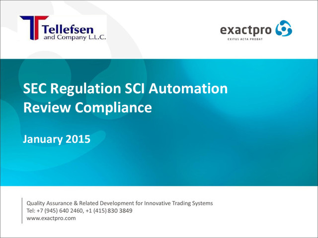 and certification. Tellefsen and Company, L.L.C. (Tellefsen) and Exactpro Systems,