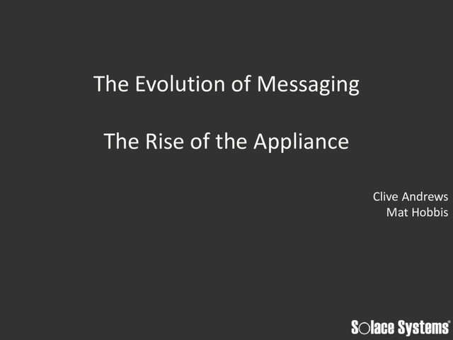Solace Systems The Evolution of Messaging The Rise of the Appliance