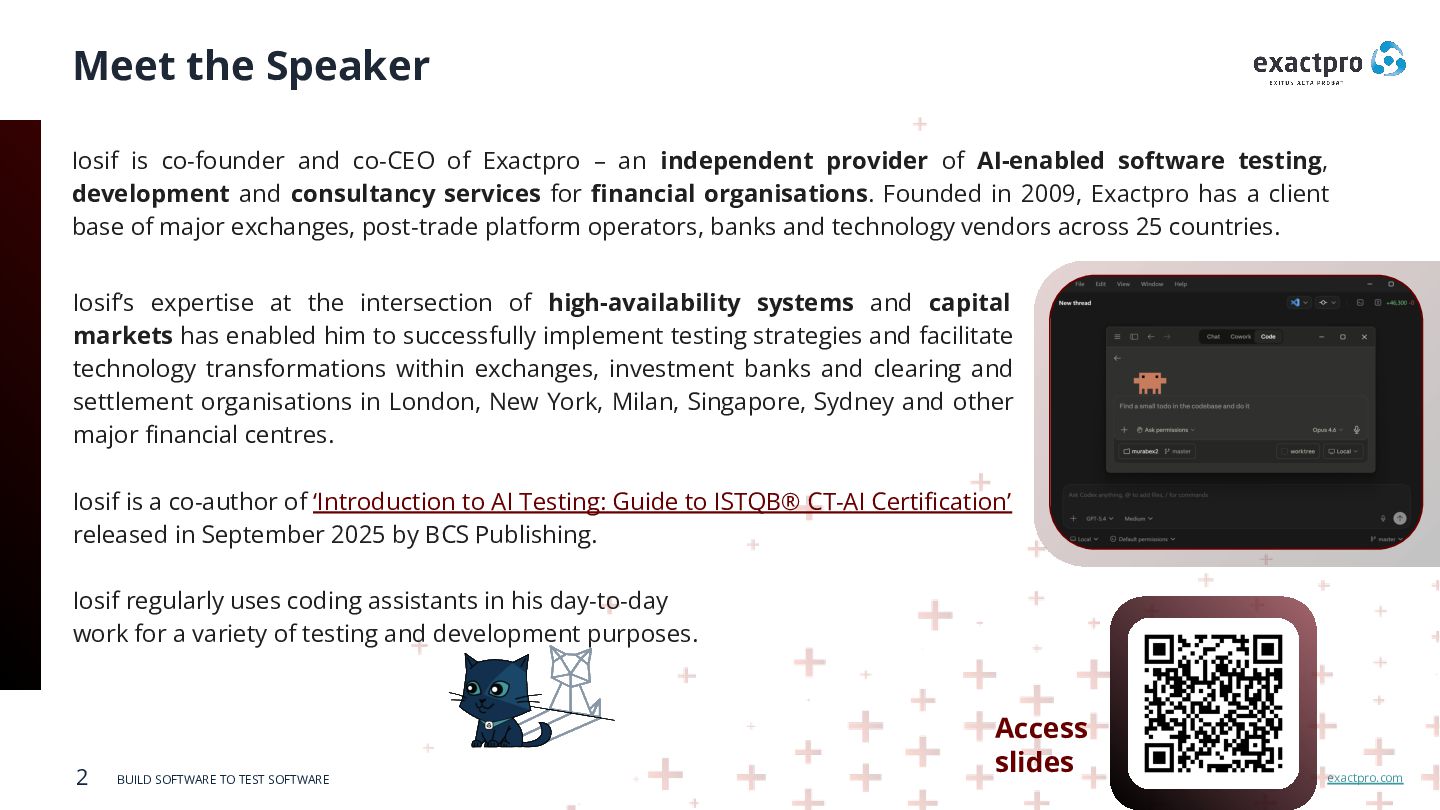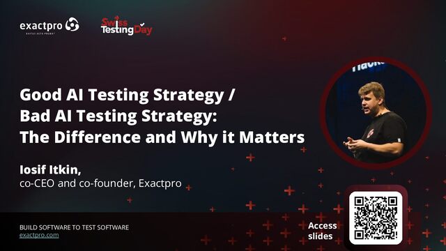 Iosif Itkin, Exactpro co-CEO and co-founder will be giving a talk on ‘Good AI Testing Strategy / Bad AI Testing Strategy: the Difference and Why it Matters’ as part of the program.