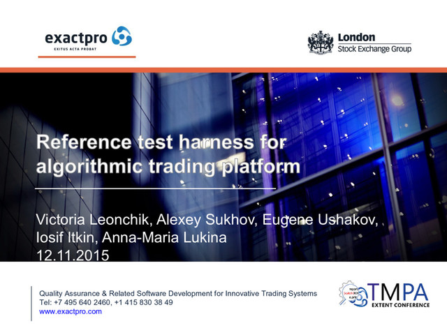 for Innovative Trading Systems Tel: +7 495 640 24 60 , +1 415 830 38 49 exactpro.com Introduction Flash Crash in 2010 The Knight Capital runaway algorithm disaster in 2012