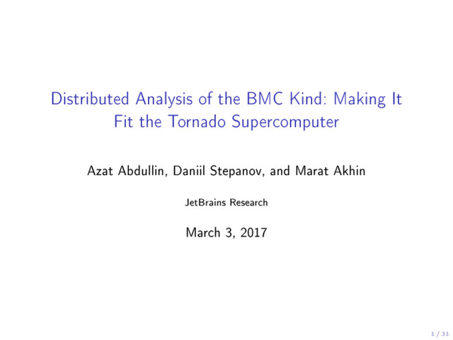 Distributed Analysis of the BMC Kind: Making It Fit the Tornado Supercomputer