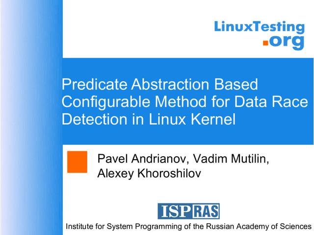 Pavel Andrianov, Vadim Mutilin,Alexey Khoroshilov, Institute for System Programming
