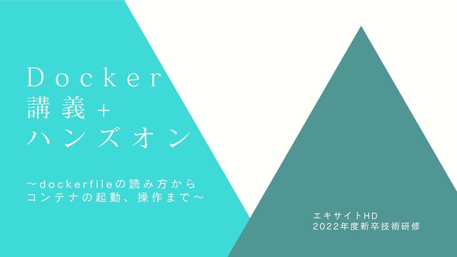 読 ん で み よ う 今回の研修に使用するPHPコンテナの例 FROM:ベースにするイメージの指定 一から全部必要なものを書き出すのは大変なので、 定番の環境はdocker hubに定番のイメージがあることが多いです (公式のイメージを積極的に利用しましょう) COPY:ホストからコンテナ内にファイルをコピー 左の例では、php.iniなどの設定ファイルをコピーしています RUN:指定したコマンドを実行する aptやyarmなどパッケージを取ってくるためのパッケージ管理ツールで 必要なライブラリに更新をかけたり、インストールすることが多いで す WORKDIR:ワークディレクトリ(カレントディレクトリ)を指定 他によく使うもの VOLUME:コンテナで作成したデータをホストのファイルシステムを マウントしてデータを置く (コンテナ内の変更がホストにも反映されるディレクトリを指定) 0 3 . D o c k e r f i l e の 読 み 方 --from=composerはマルチステージビルドです 公式のcomposerイメージから、composerを取ってきています 手元で/api/docker/php/Dockerfileを開きながら聞いてください