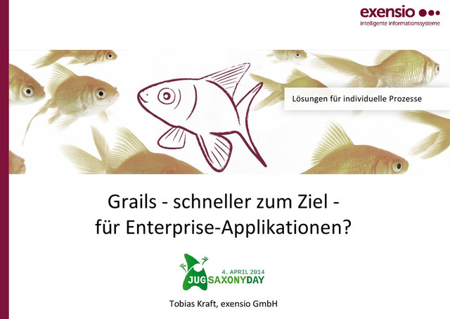 Install & GO! • Nahtlose Java Integration, wird auf der Java Virtual Machine (JVM) ausgeführt • Ursprünglich inspiriert von Ruby on Rails • Open Source • Grails Historie • Projekt-Beginn 2005 • Grails 1.0 (02/2008) • Grails 2.3.7 (03/2014, aktuelles Release) • Basiert auf Groovy