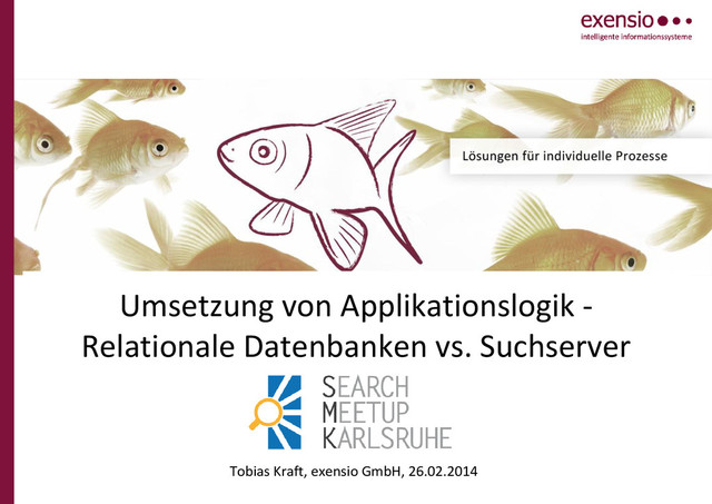 nur für Bigdata, Highlighting, Suggestion, Fuzzy-Abfragen, … sondern auch für • Listen in CRUD-Dialogen • Baum-Navigation und Facettieren • Personalisierung / Berechtigungen • Vereinheitlichung von Quellen • Verknüpfung von strukturierten und unstrukturierten Daten