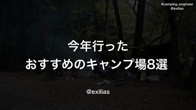 DBNQJOH@FOHJOFFS !FYJMJBT w ͕ͨ͘͞Μˍ͕ྲྀΕ͍ͯΔʢܠ؍Իྑ͍ʣ w దʹྡͷ۠ըͱΕ͍ͯΔ ⭕۠ըˍΦʔτΩϟϯϓͳͷʹงғؾྑ͍ ͔·ୌΦʔτΩϟϯϓ