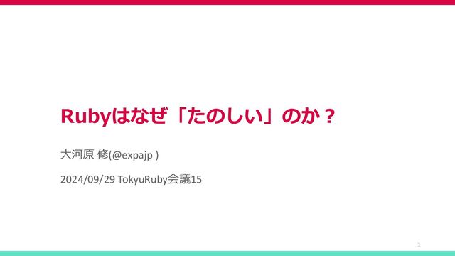 Rubyはなぜ「たのしい」のか? 大河原 修(@expajp ) 2024/09/29 TokyuRuby会議15 1