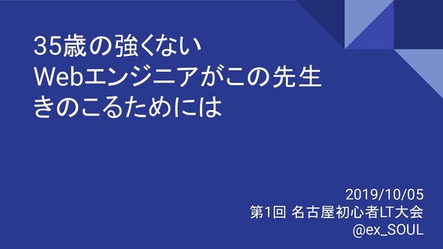 35歳の強くない Webエンジニアがこの先生 きのこるためには 2019/10/05 第1回 名古屋初心者LT大会 @ex_SOUL