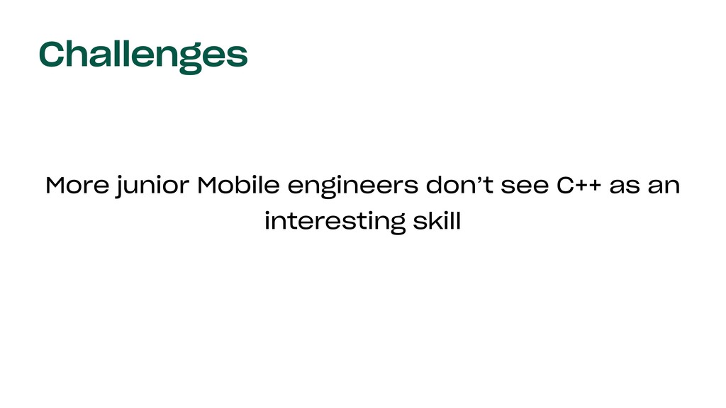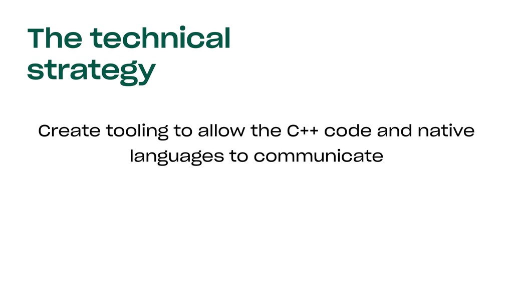 Until very recently, Dropbox had a technical strategy on mobile of sharing code between iOS and Android via C++. The idea behind this strategy was simple—write the code once in C++ instead of twice in Java and Objective C (Swift and Kotlin weren't around yet when we adopted this strategy).