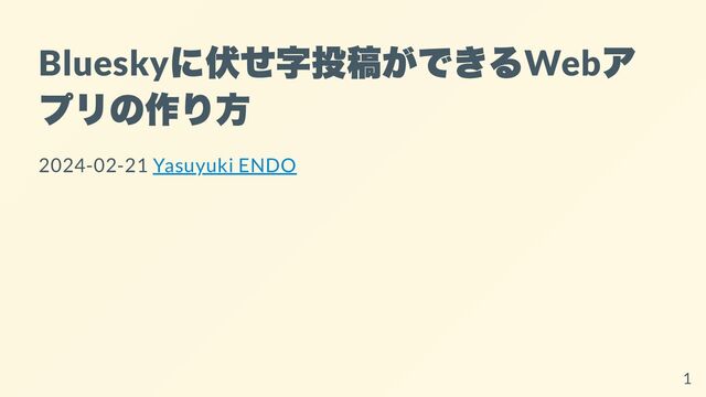 Bluesky に伏せ字投稿ができる Web ア プリの作り方 2024-02-21 Yasuyuki ENDO 1