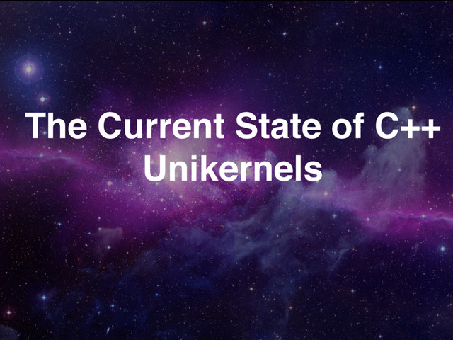 In this slide deck we look at the state of C++ unikernels and compare/contrast some of there differences.