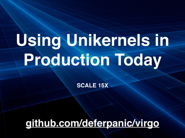 A talk given at Scale15X in Pasadena, CA - Using Unikernel In Production Today not only dispels rumors surrounding {debugging, security, etc.} but shows the attendee how they can start using the ecosystem immediately.