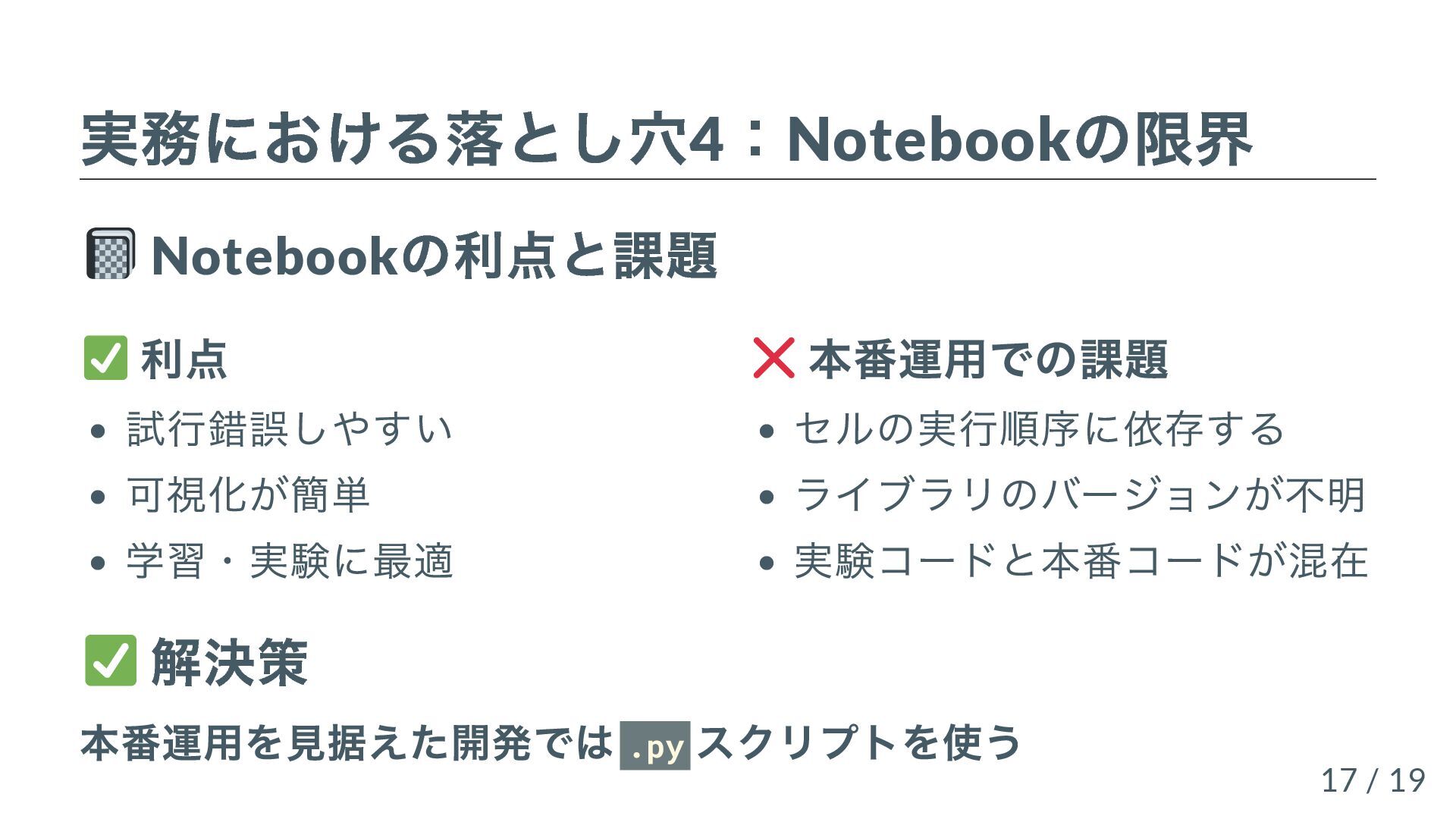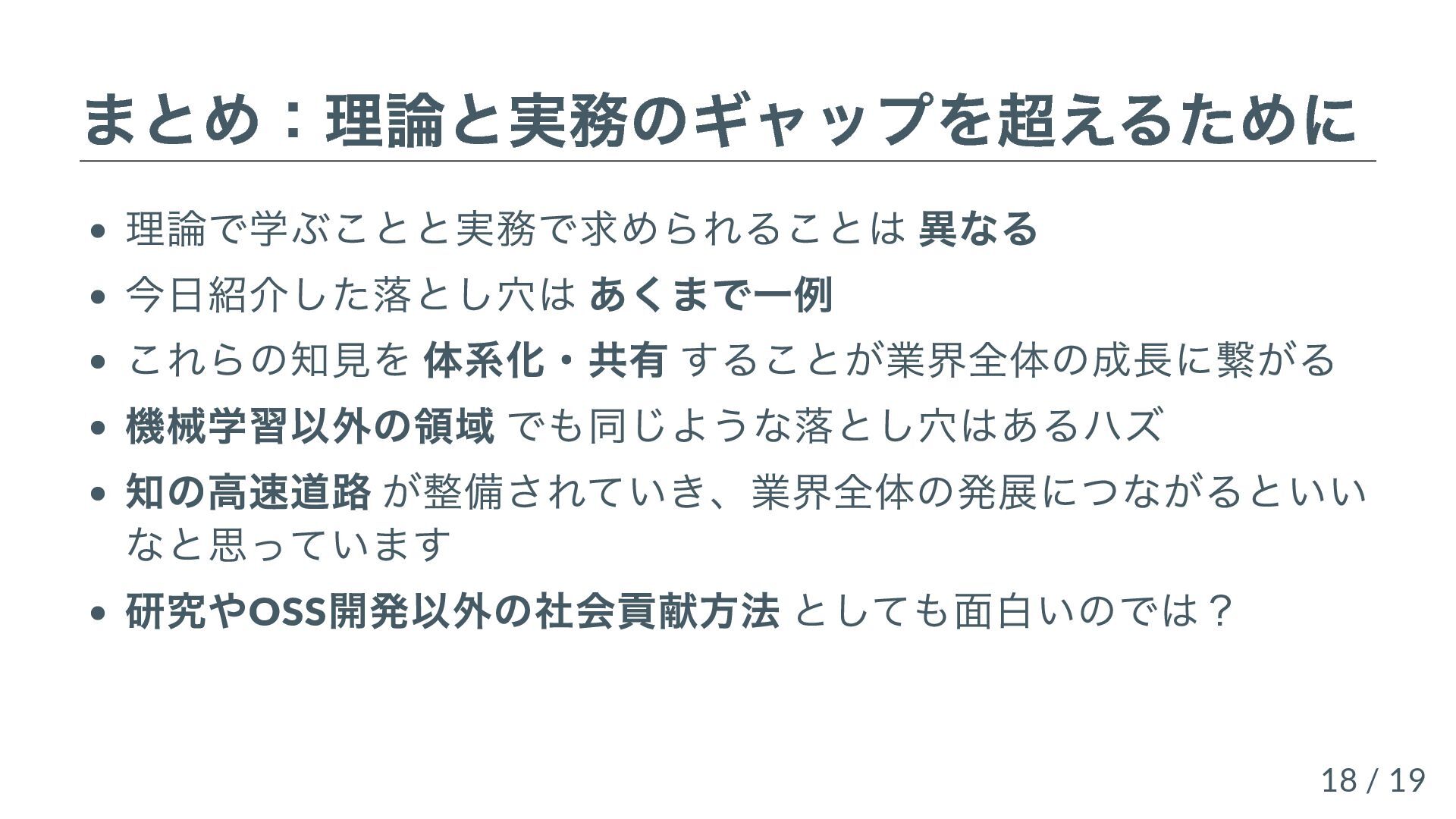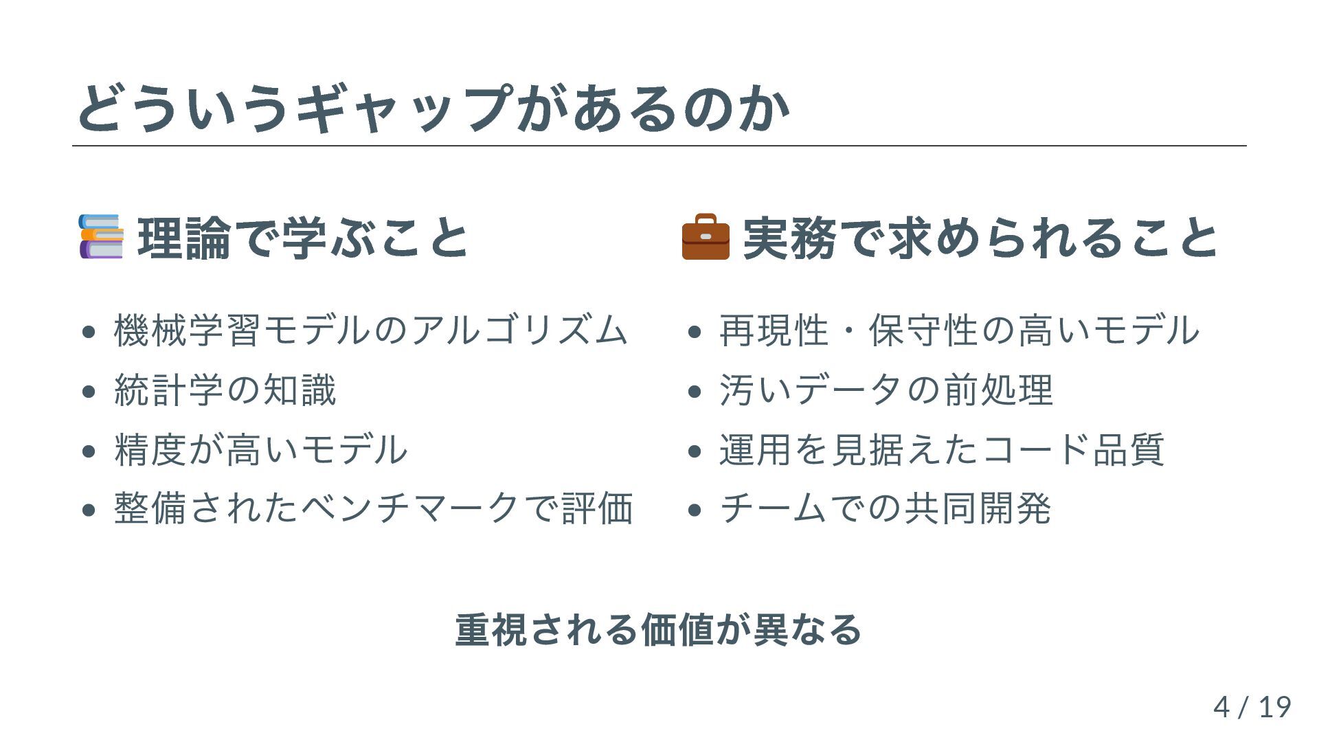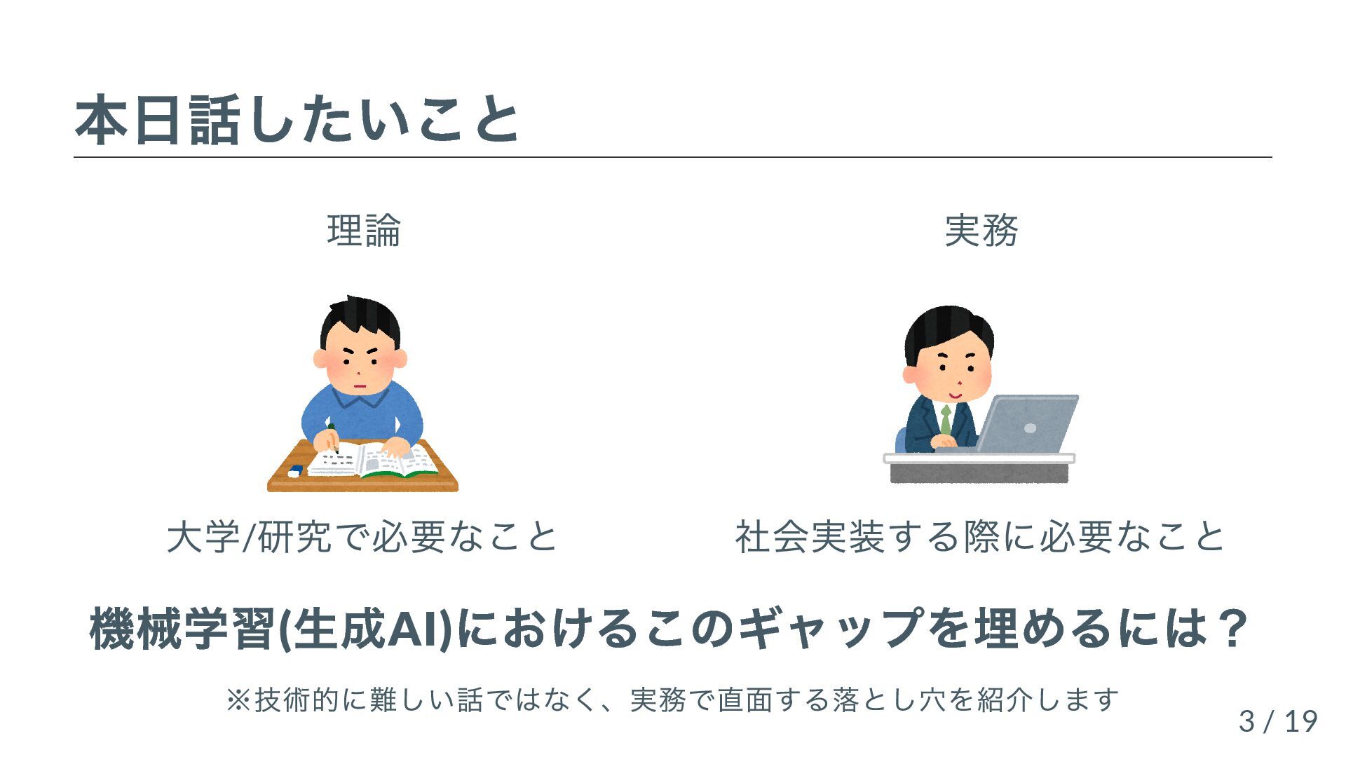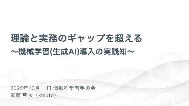 機械学習や生成AIを導入する上で直面する、「理論と実務のギャップ」について、共著書『先輩データサイエンティストからの指南書』(技術評論社)の執筆過程で整理した知見をもとに、具体的な4つの落とし穴の例を用いて紹介します。