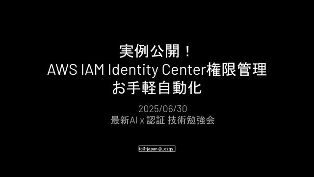 実例公開! AWS IAM Identity Center権限管理 お手軽自動化 tc3-japan @_ezqy 2025/06/30 最新AI