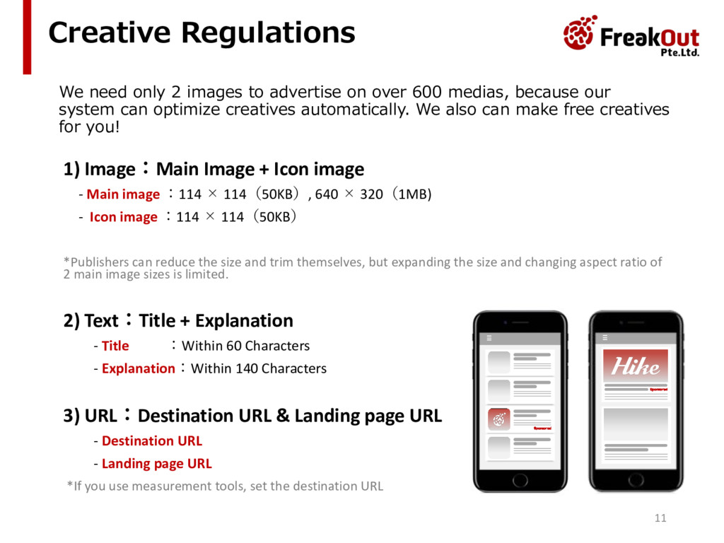 O S O O /)) WONSK % LOMK O c OW MK SWSdO M OK S O K WK SMKVVc JO KV MK WKUO P OO M OK S O P c 11 ≡ 4QPOTPSFE ≡ 4QPOTPSFE 1) ImageɿMain Image + Icon image - Main image 114 11450KB, 640 3201MB) - Icon image 114 11450KB *Publishers can reduce the size and trim themselves, but expanding the size and changing aspect ratio of 2 main image sizes is limited. 2) TextɿTitle + Explanation - Title Within 60 Characters - ExplanationWithin 140 Characters 3) URLɿDestination URL & Landing page URL - Destination URL - Landing page URL *If you use measurement tools, set the destination URL