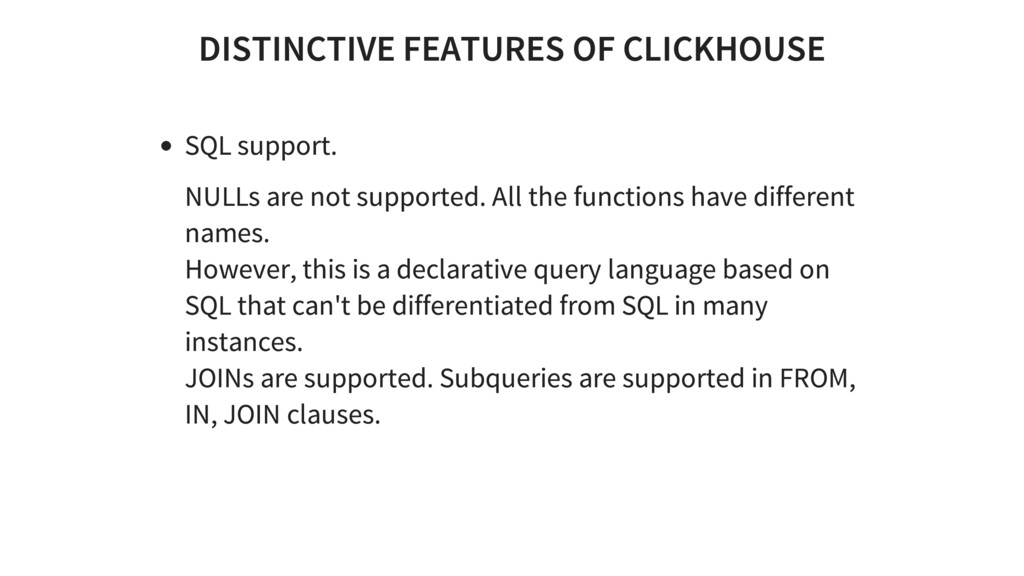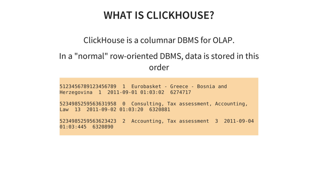 Introduction to ClickHouse - an open-source column oriented database management system that allows generating analytical data reports in real time
