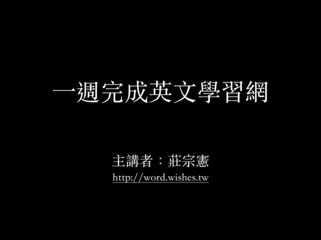 ⼀一週完成英⽂文學習網 ! 主講者:莊宗憲 http://word.wishes.tw