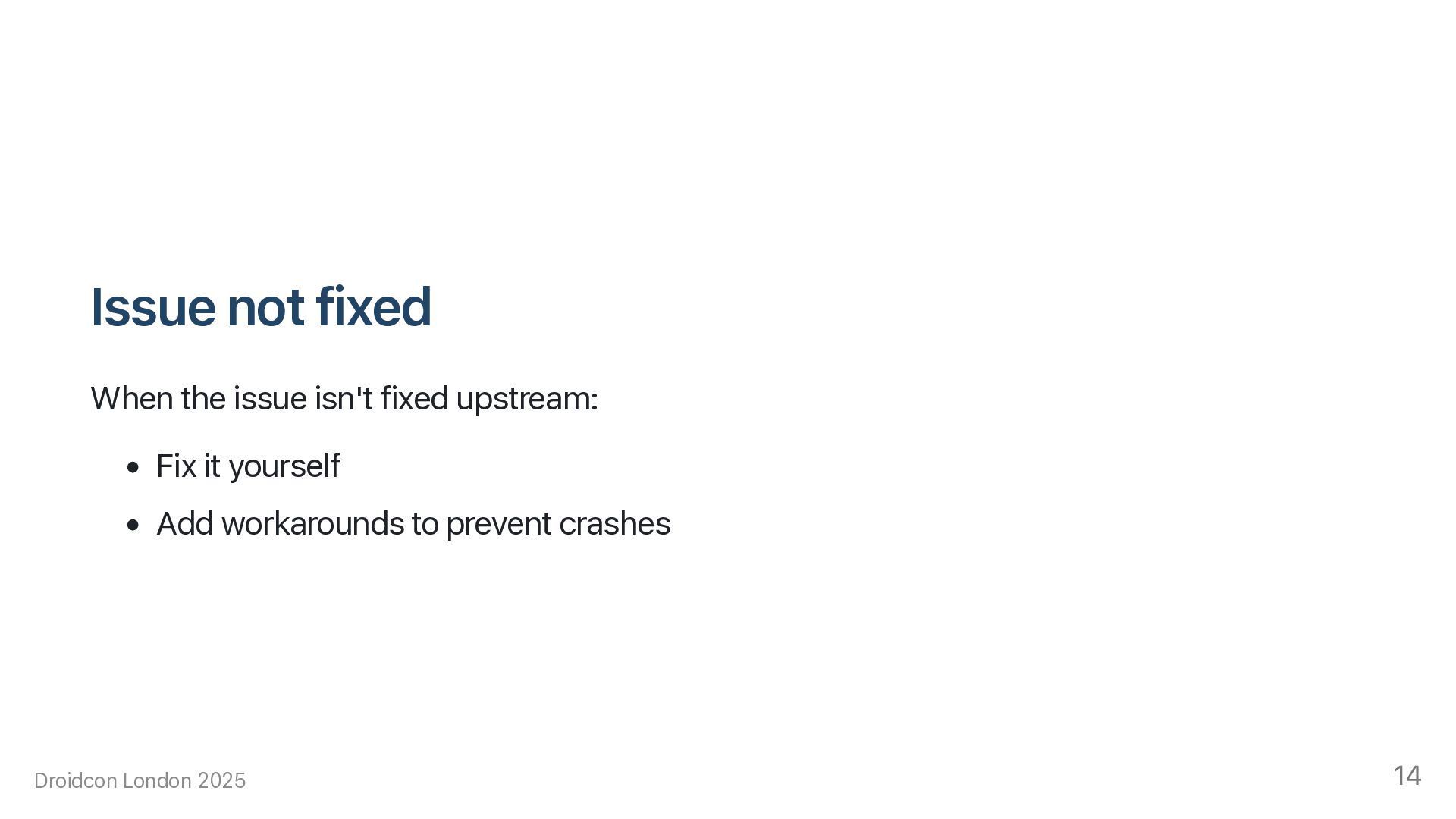 As developers, we are responsible for bugs in our apps, even when they are caused by third-party dependencies.