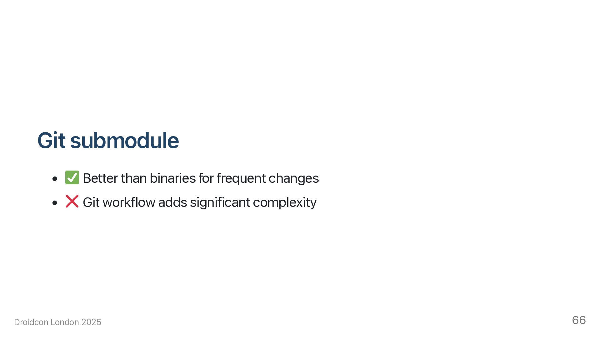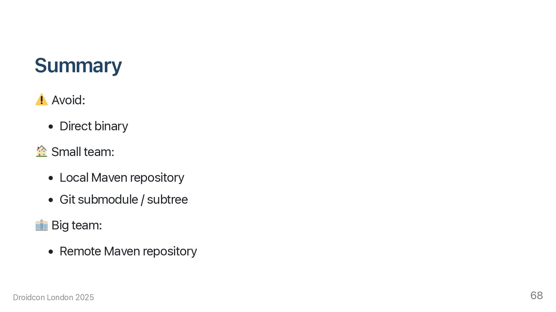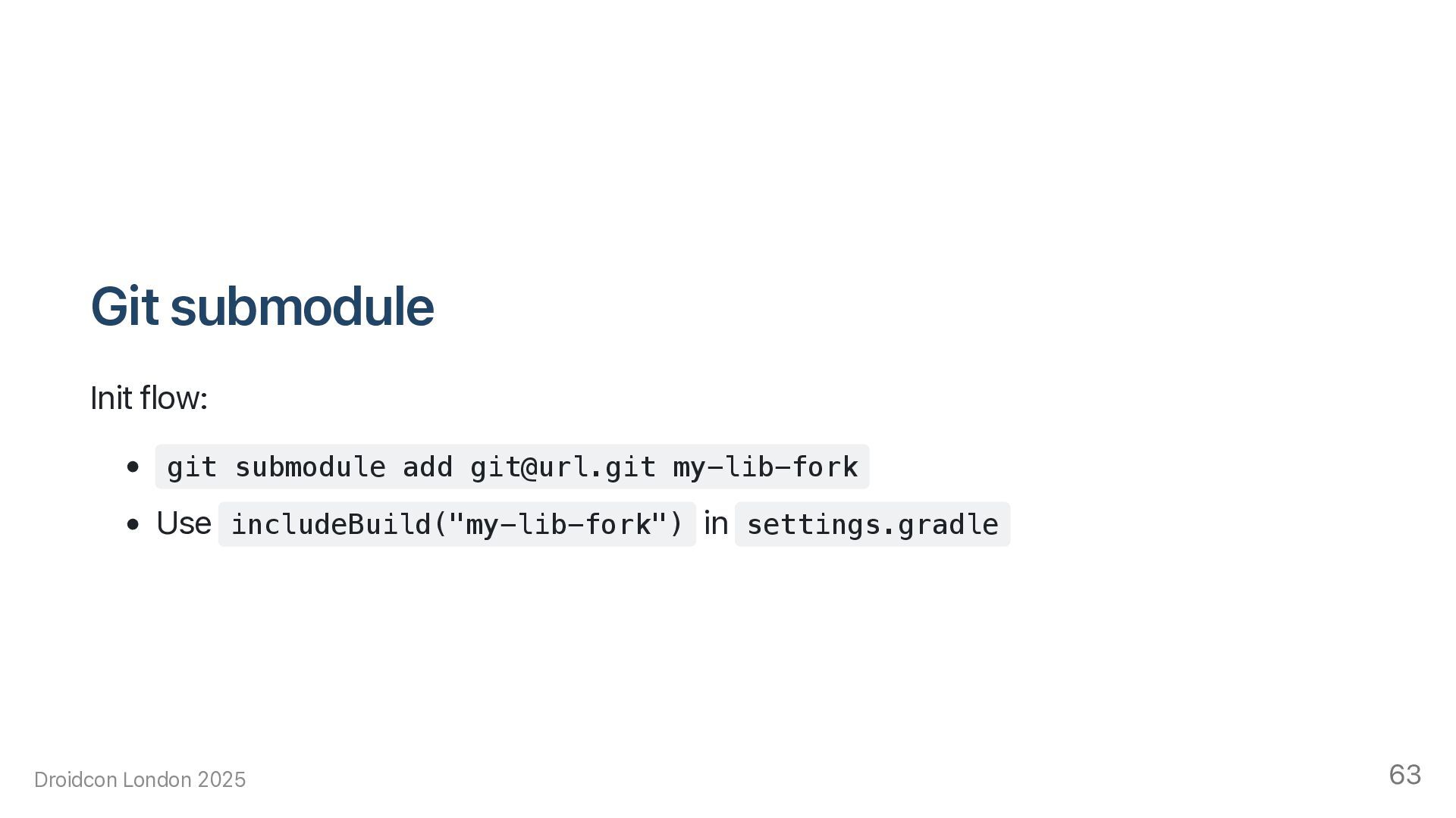 - Forking libraries and using them in your project via Git submodules, Nexus repositories, or direct artifacts;