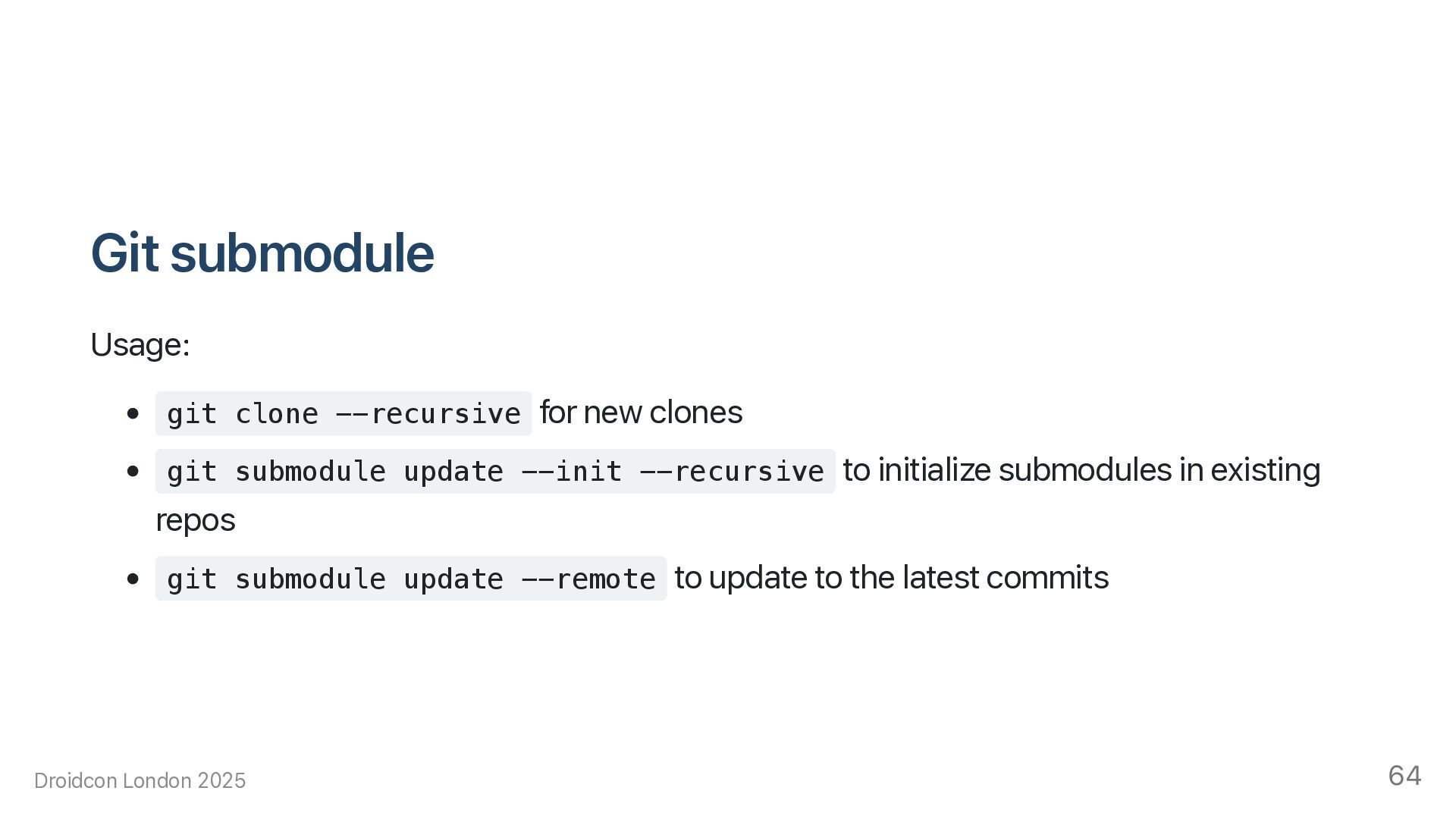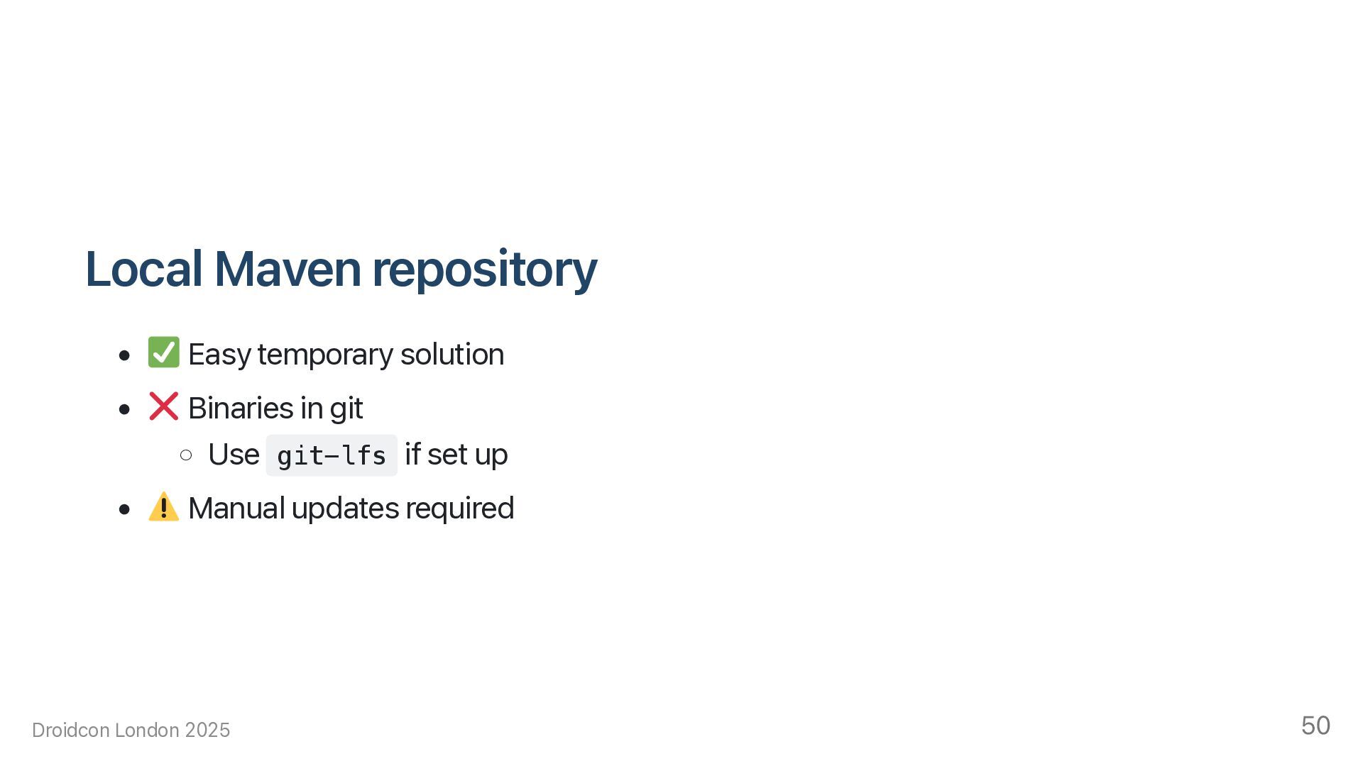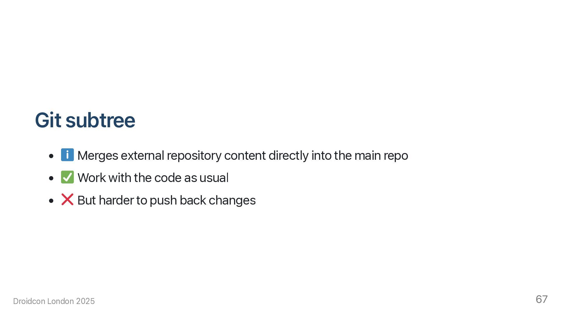 - Forking libraries and using them in your project via Git submodules, Nexus repositories, or direct artifacts;