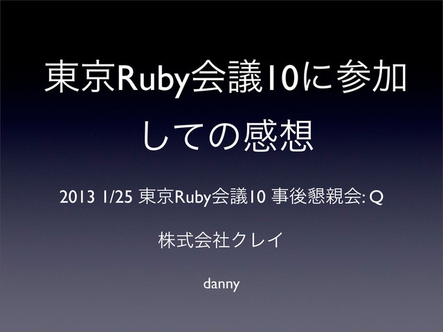 danny 2013 1/25 ౦ژRubyձٞ10 ࣄޙ࠙ձ: Q ౦ژRubyձٞ10ʹࢀՃ ͯ͠ͷײ גࣜձࣾΫϨΠ