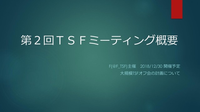 第2回TSFミーティング概要 F(@F_TSF)主催 2018/12/30 開催予定 大規模TSFオフ会の計画について