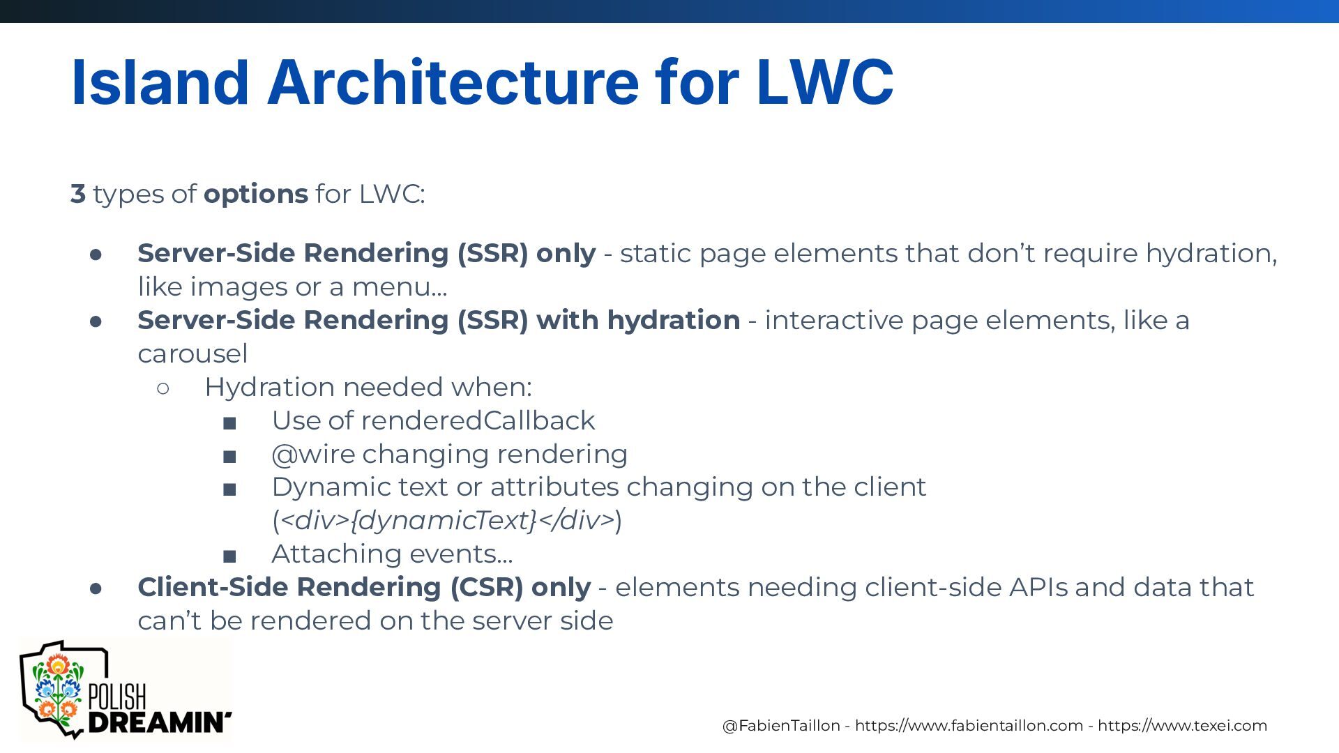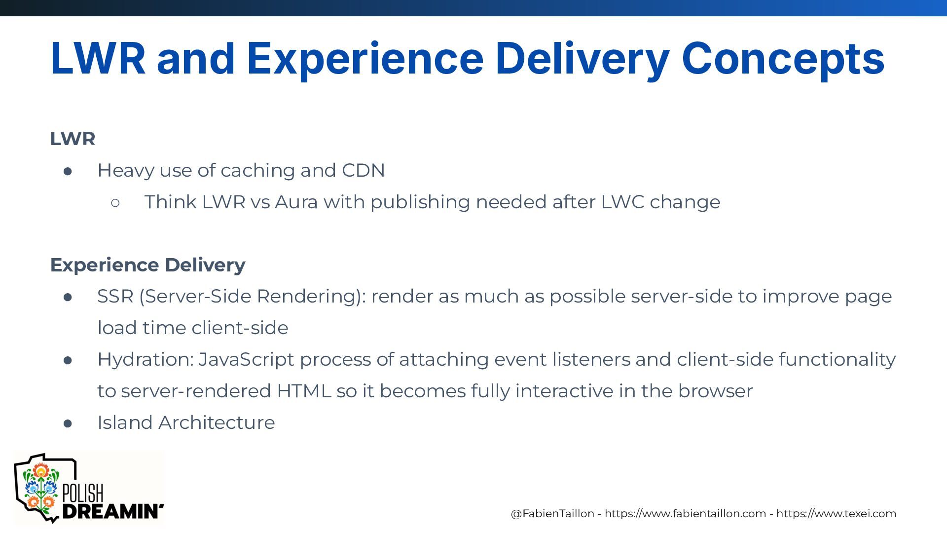 Discover how to leverage the new Experience Delivery feature for LWR to develop blazing fast sites. We’ll have a look at how you can make use of server-side rendering (SSR), content delivery network (CDN) or even Islands Architecture using hydration capabilities to achieve your goal. These obscure terms will be crystal clear for you at the end of this session.