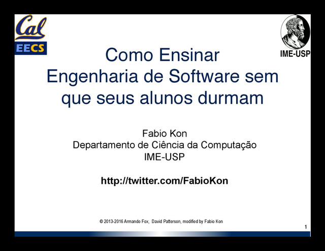 The talk I've given at RubyConf Brasil 2016 on Armando Fox and David Patterson methodology for Software Engineering classes and the way we have applied at the University of São Paulo.