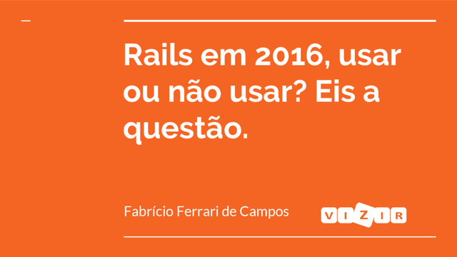 Nos últimos anos muito se vem falando do futuro do Rails, principalmente devido a forte adoção do Node e SPAs. O objetivo da Talk é apresentar é condensar alguns fatos ao redor do assunto, junto com opiniões da comunidade e um case prático com Rails 5, para que você tenha mais bases pra responder a perguntar: Rails em 2016, usar ou não usar?