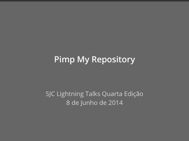 Slides da lightning talk "Pimp My Repository", ministrada no SJC Lightning Talks Quarta Edição em 2014, no ITA, prédio ELE/COMP, Auditório B.