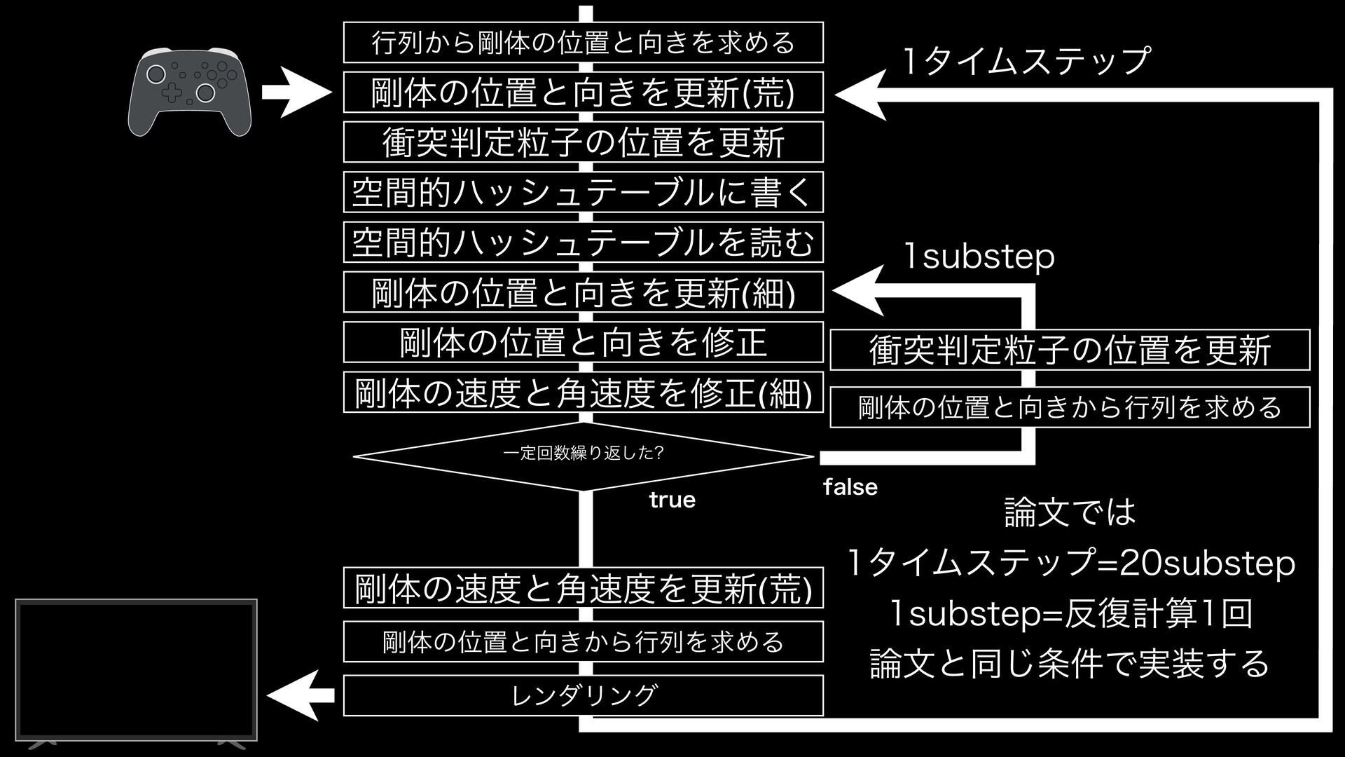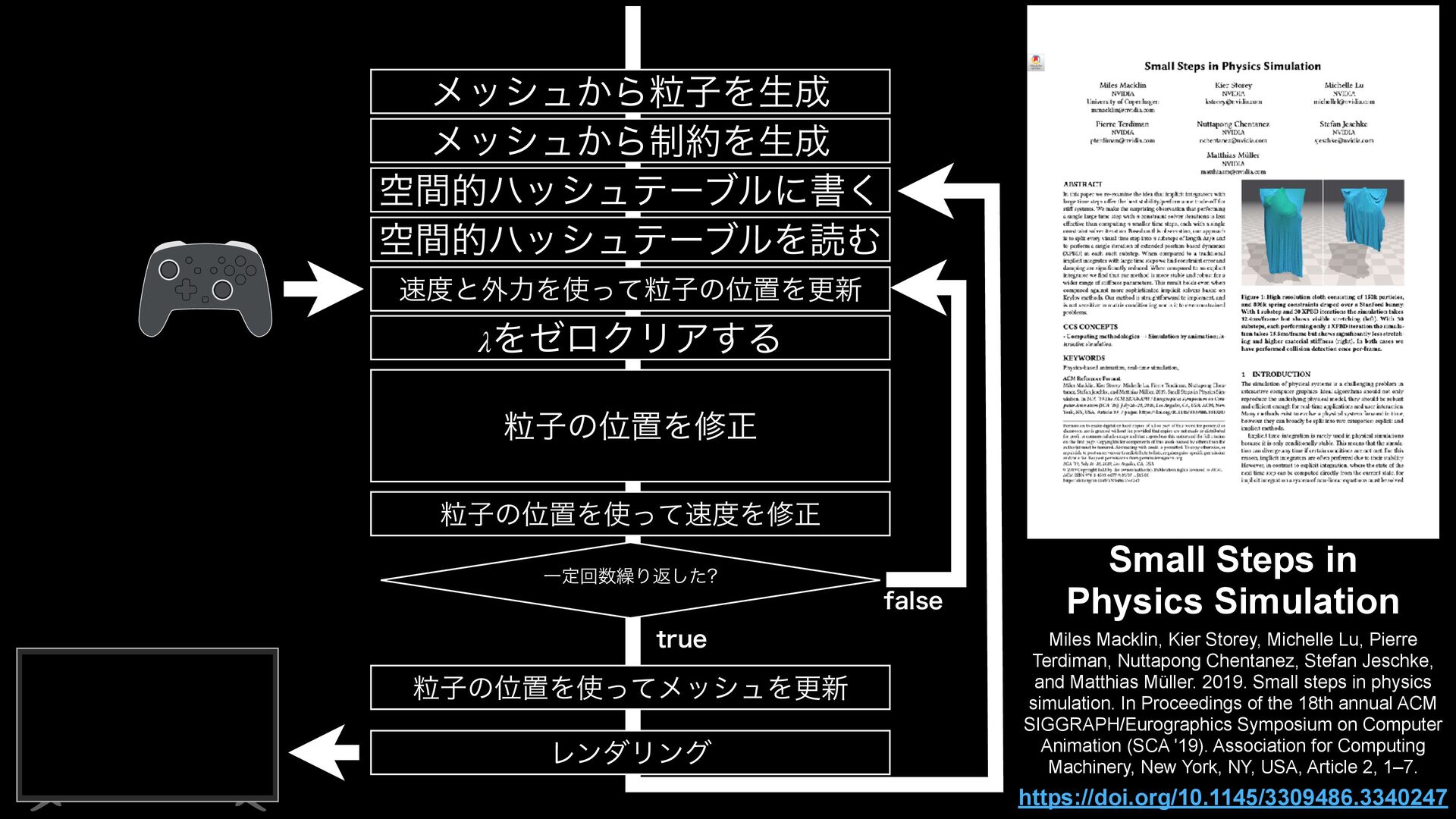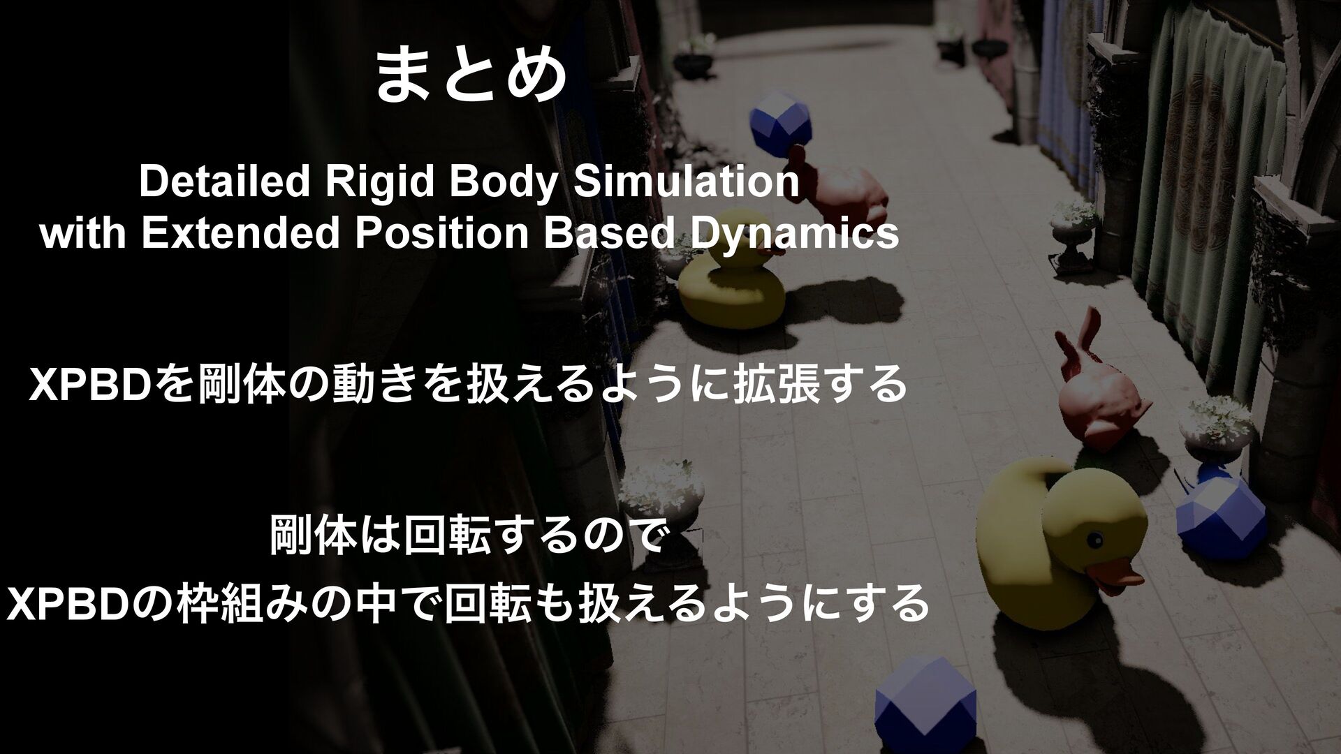 ビデオゲームで用いられる物理シミュレーションの手法 Position Based Dynamicsを剛体を扱えるように拡張したDetailed Rigid Body Simulation
