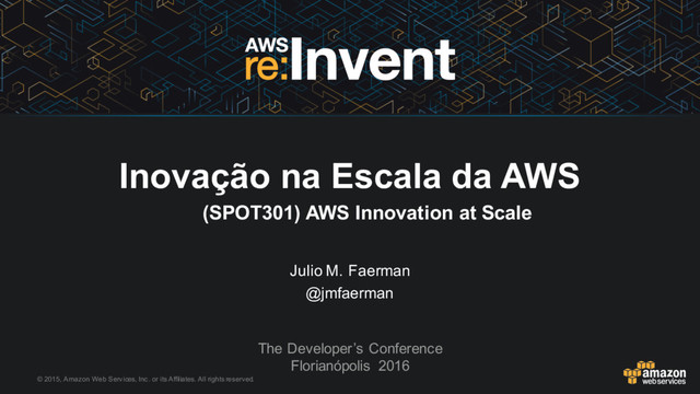 platform that lets connected devices easily and securely interact with cloud applications and other devices. AWS IoT can support billions of devices and trillions of messages, and can process and route those messages to AWS endpoints, such as AWS Lambda and Amazon Kinesis, and to other devices reliably and securely. AWS Mobile Hub AWS Mobile Hub is the fastest way to build mobile apps powered by AWS. It lets you easily add and configure features for your apps, including user authentication, data storage, backend logic, push notifications, content delivery, and analytics — all from a single, integrated console, and without worrying about provisioning, scaling, and managing the infrastructure. AWS Lambda You can now develop your AWS Lambda function code using Python, maintain multiple versions of your function code, invoke your code on a regular schedule, and run your functions for up to five minutes.
