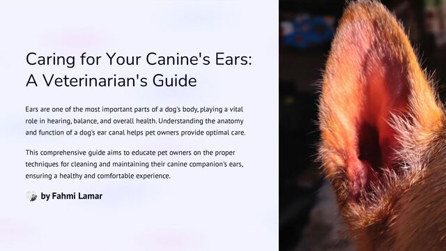 Keeping your dog’s ears healthy is crucial for their well-being, and this comprehensive guide offers expert advice on ear care. Learn how to properly clean, check for signs of infection, and maintain optimal ear health for your canine companion. This presentation covers common ear issues, preventive measures, and step-by-step instructions to ensure your dog remains comfortable and free from ear problems. Whether you're a new pet owner or a seasoned dog lover, these professional insights will help you provide the best care for your dog’s ears.