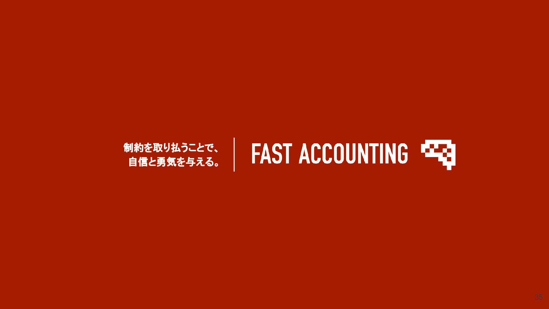 パーパス 制約を取り払うことで、自信と勇気を与える。 ファーストアカウンティングは、 顧客・従業員・社会が抱えている「制約」を取り払うことで、 「自信」と「勇気」を与えることを目的としています。 私たちは、このパーパスのみを追求し続けます。