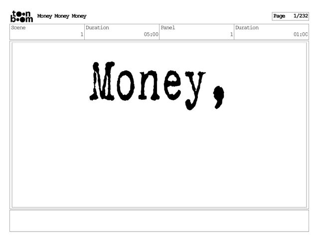 Scene 1 Duration 05:00 Panel 5 Duration 01:00 Money Money