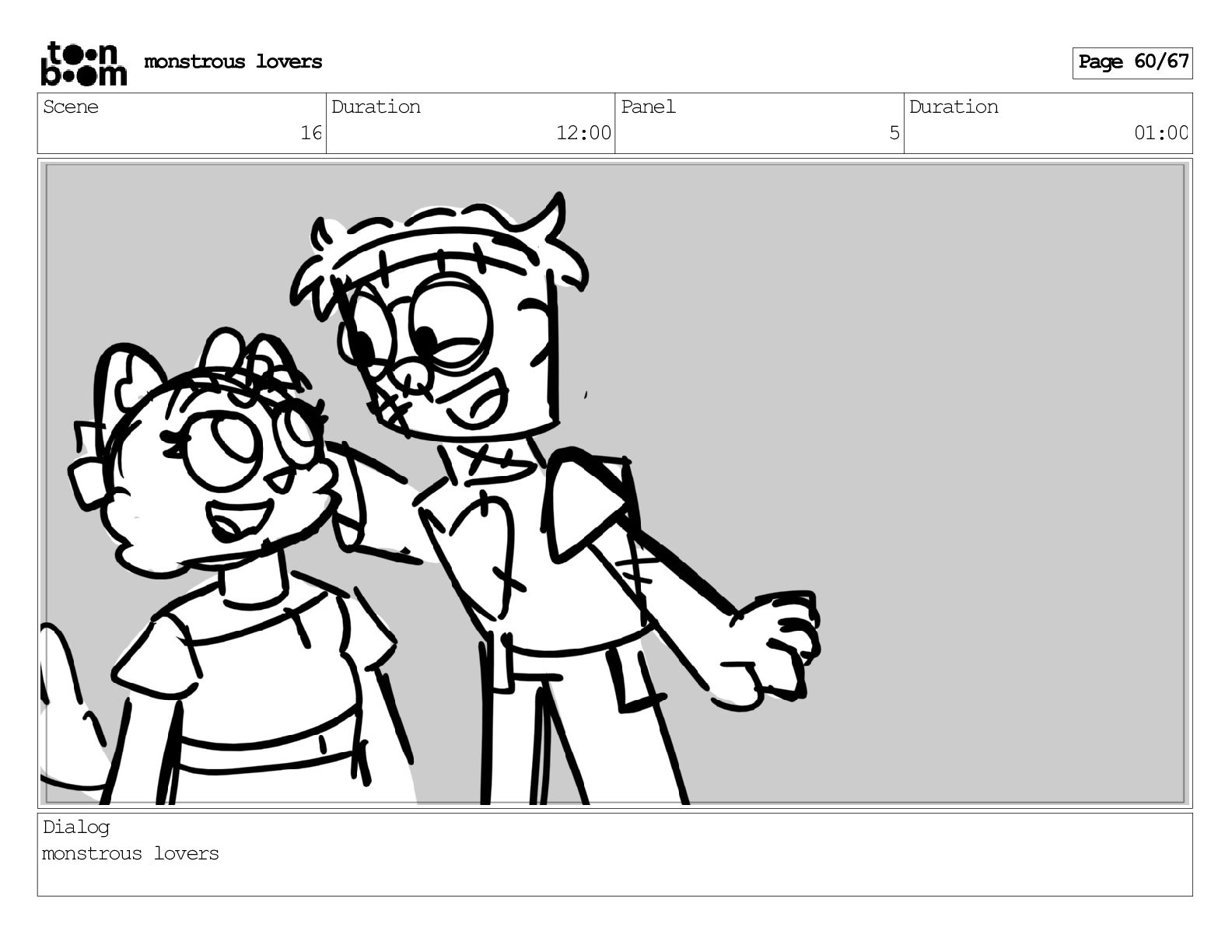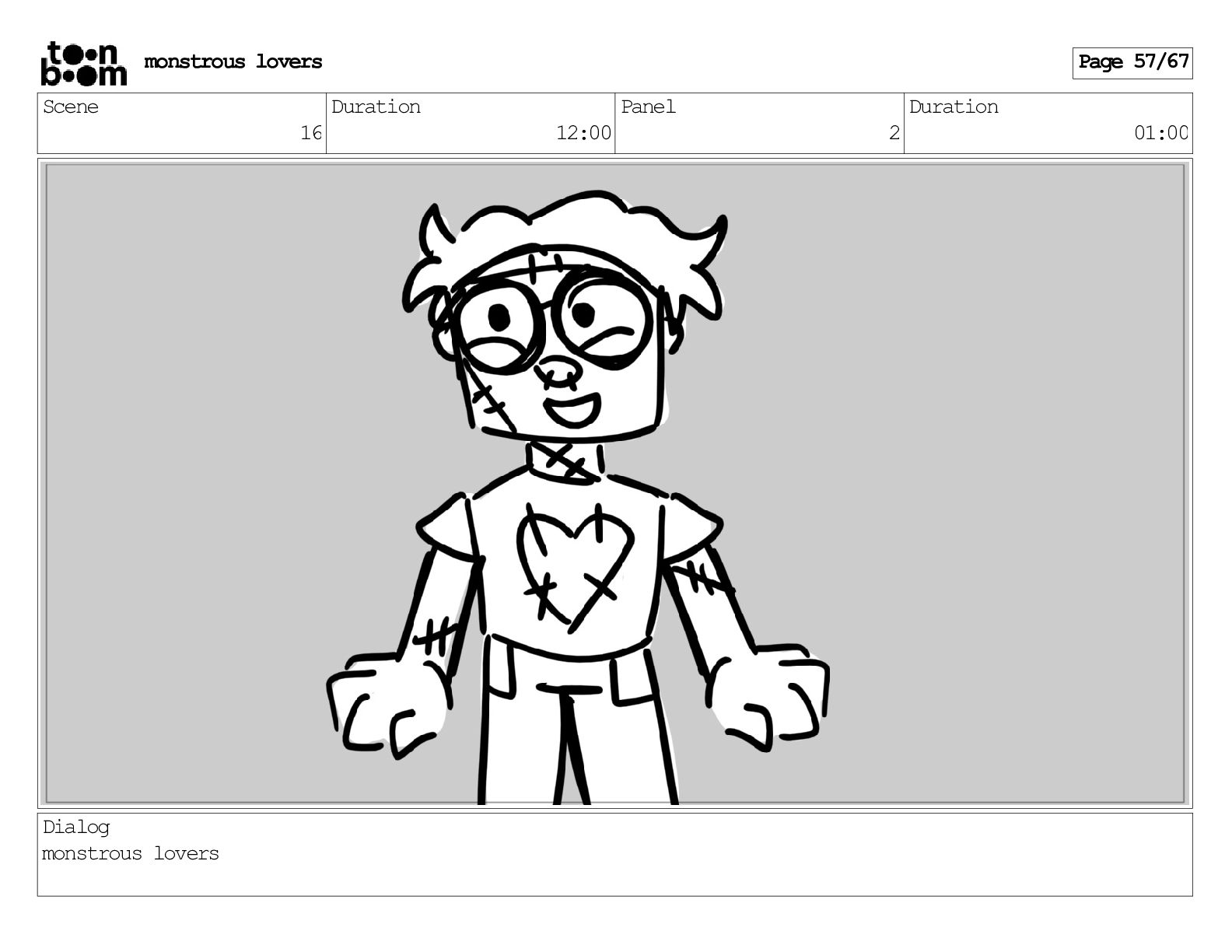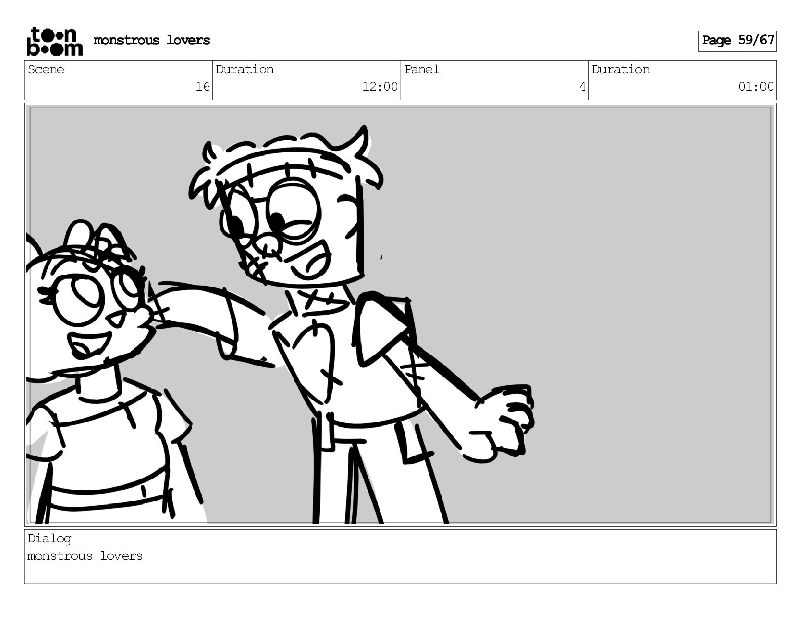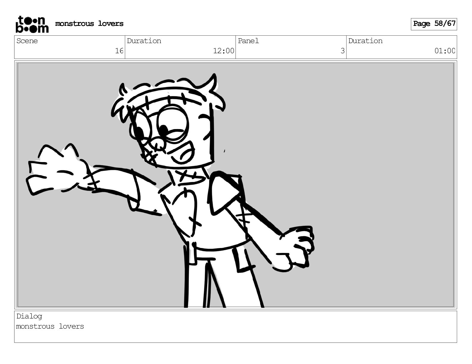 Scene 16 Duration 12:00 Panel 2 Duration 01:00 Dialog monstrous