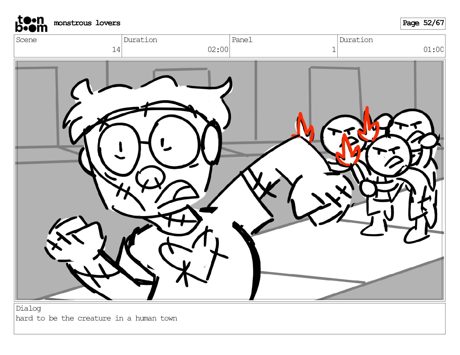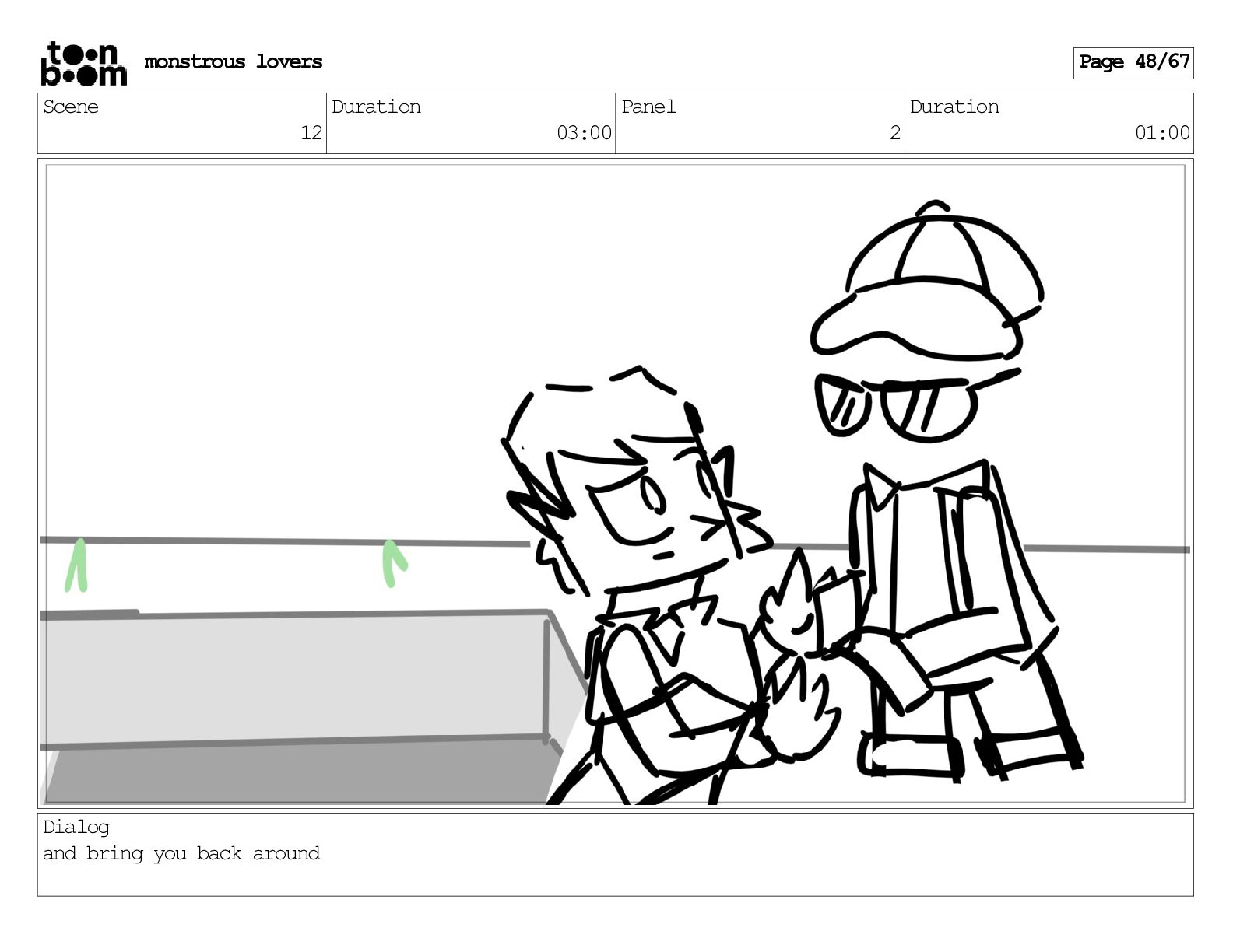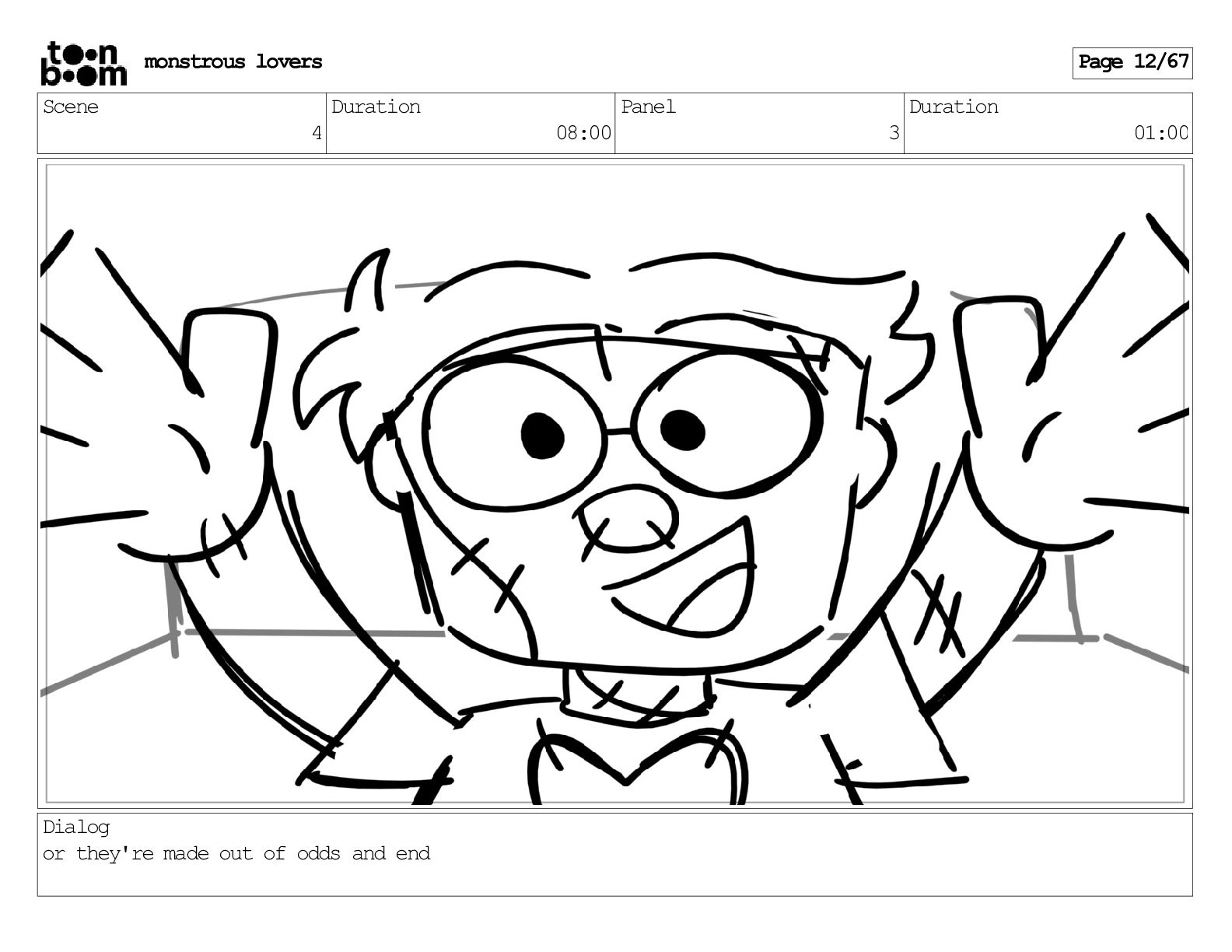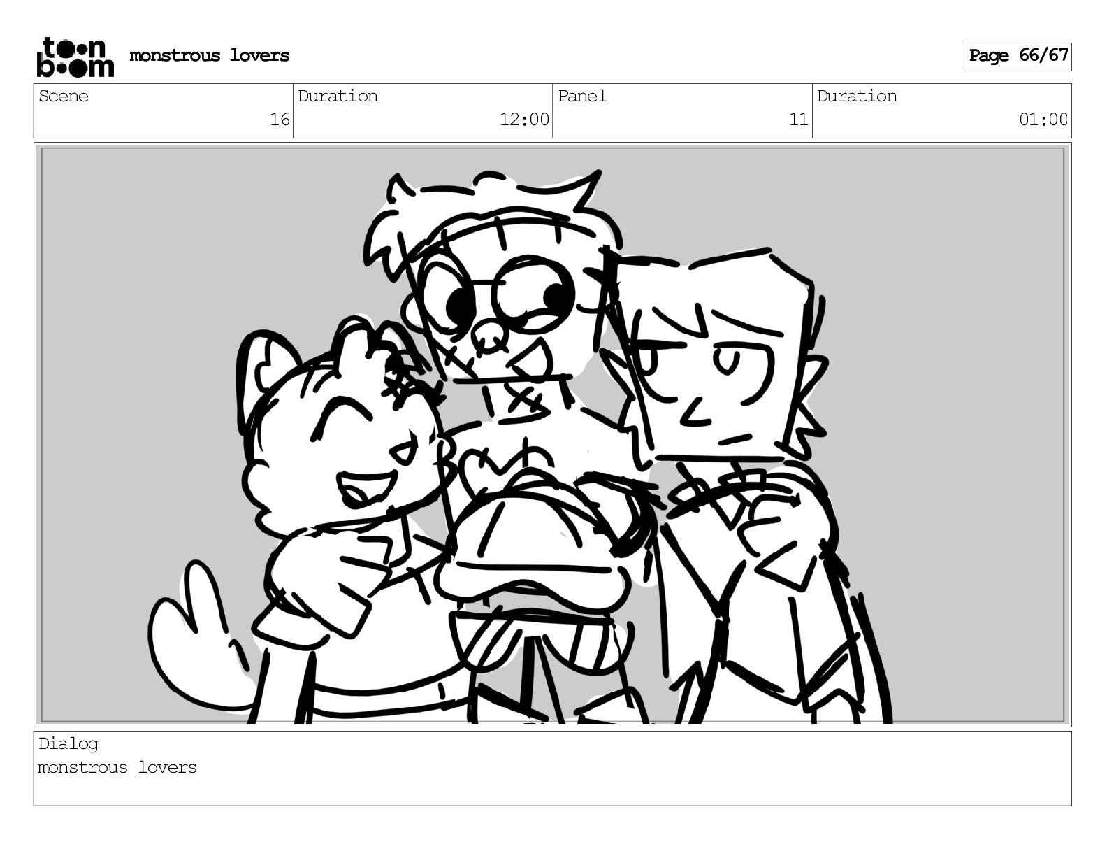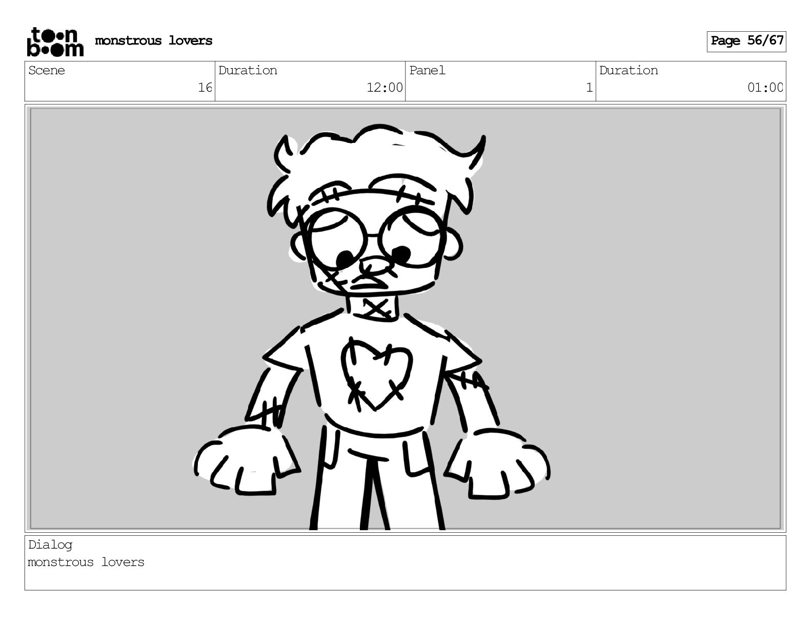 Scene 16 Duration 12:00 Panel 2 Duration 01:00 Dialog monstrous