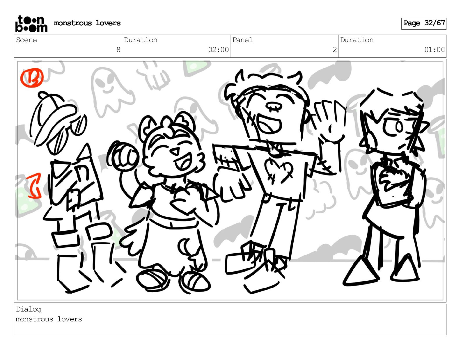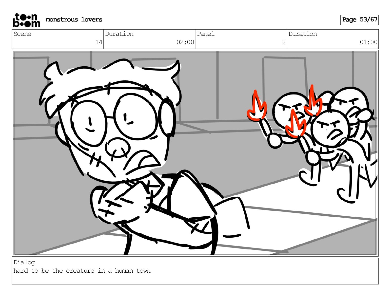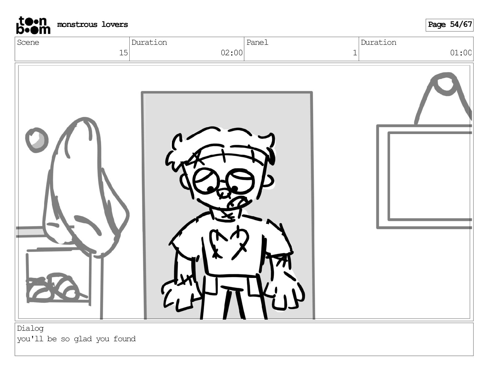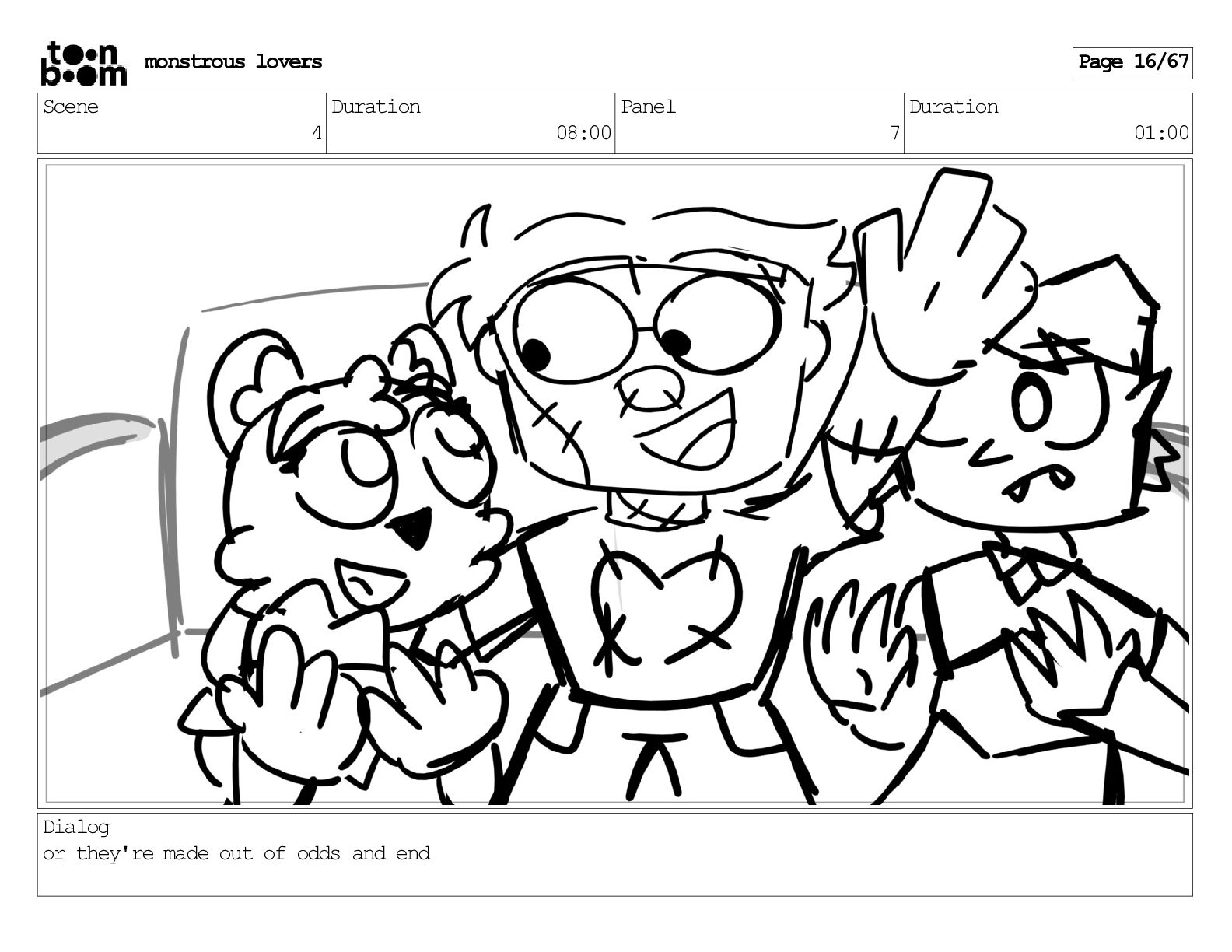 Scene 16 Duration 12:00 Panel 2 Duration 01:00 Dialog monstrous