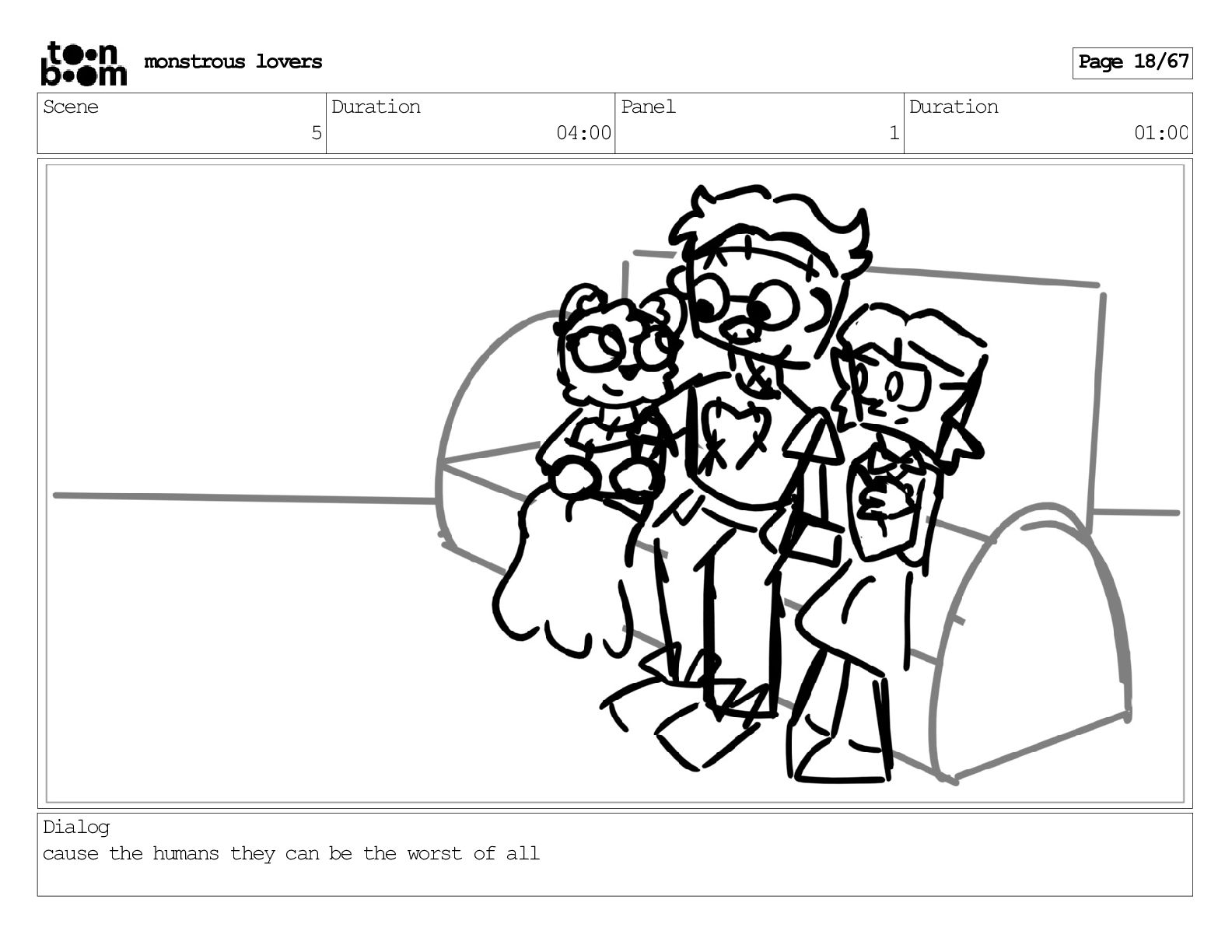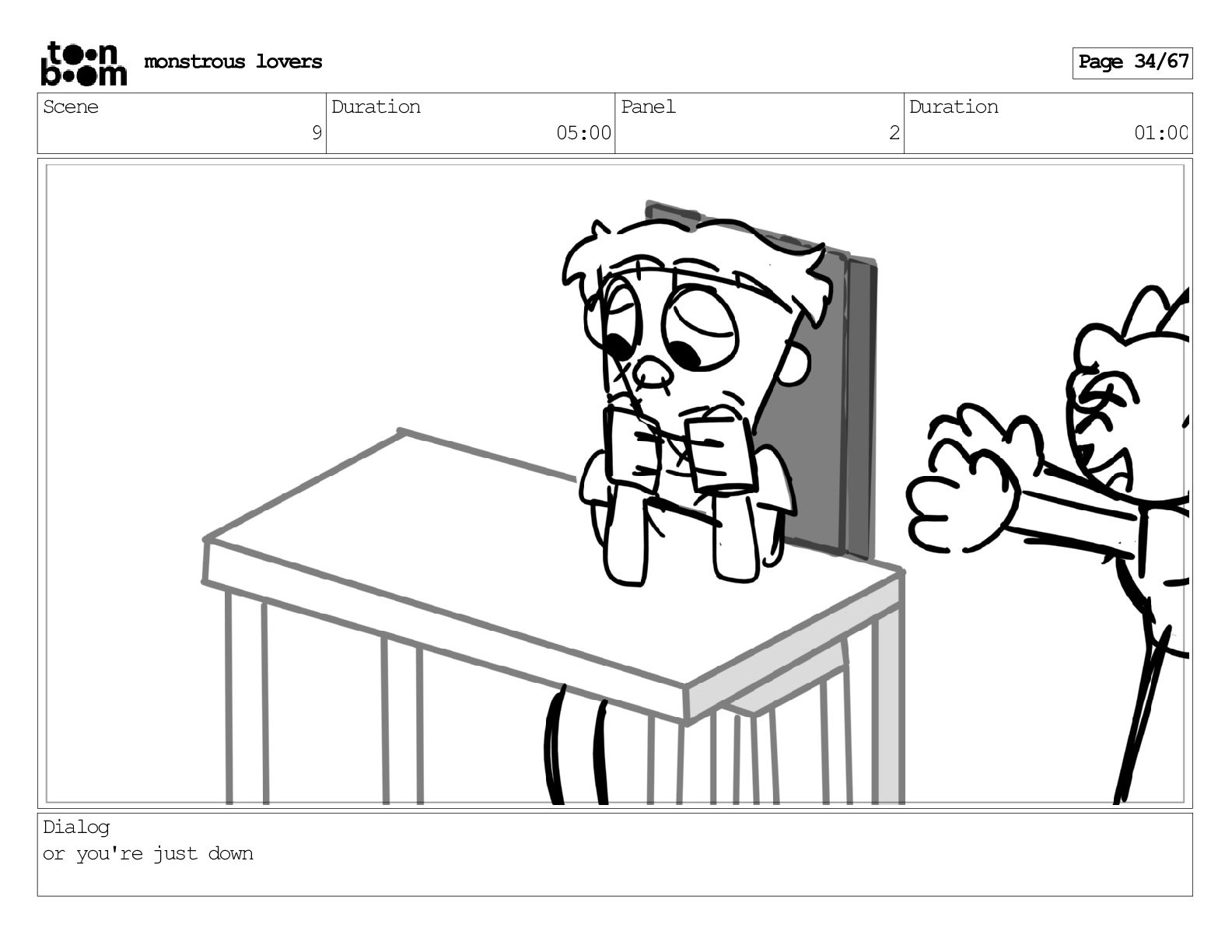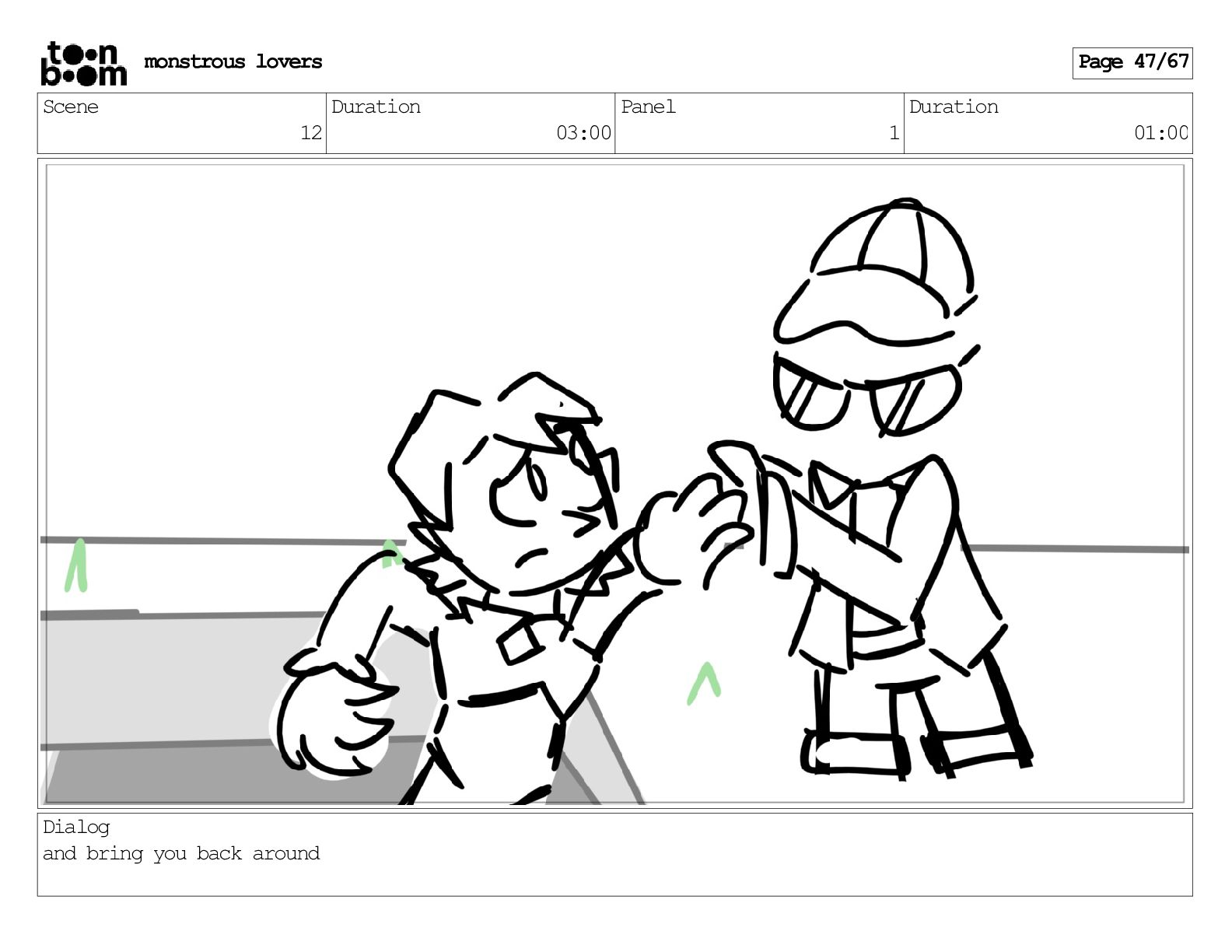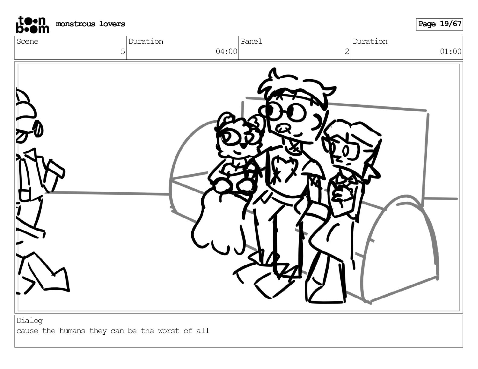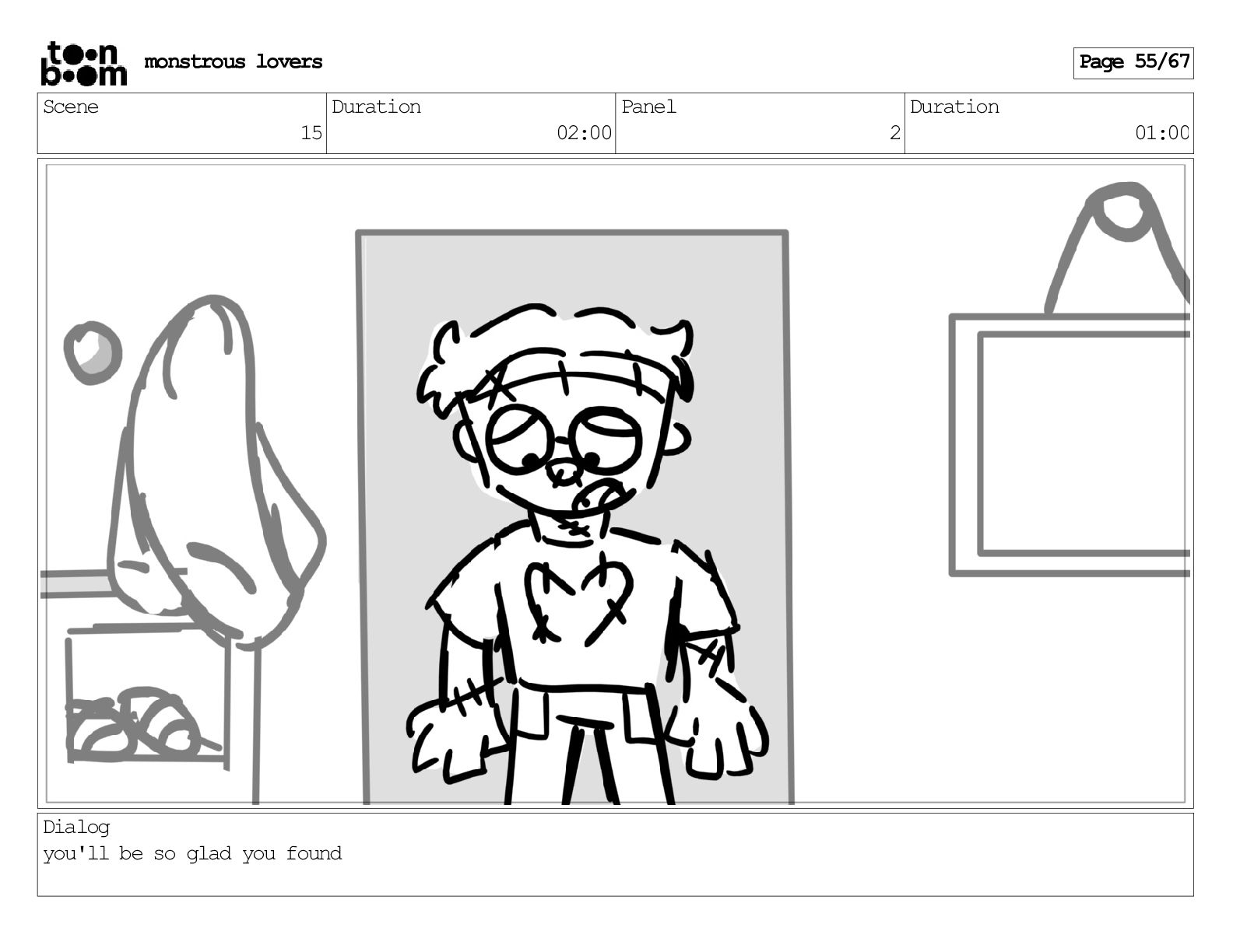 Scene 16 Duration 12:00 Panel 2 Duration 01:00 Dialog monstrous