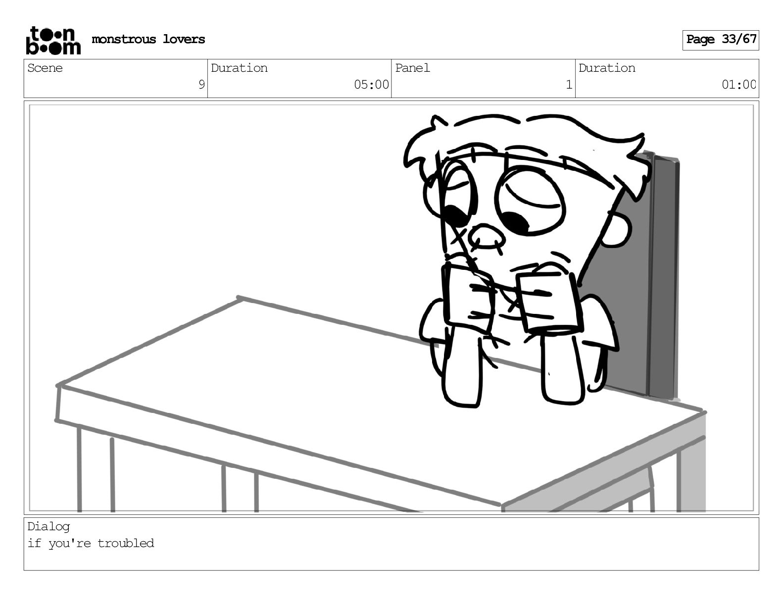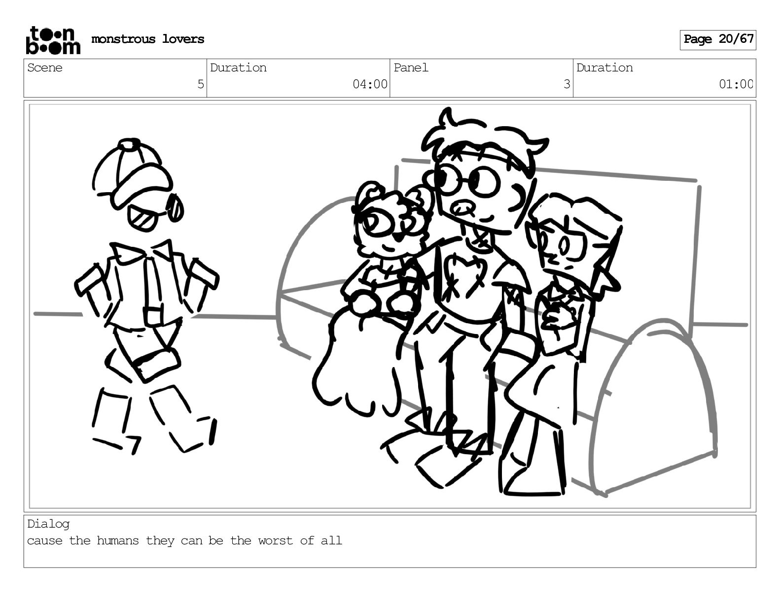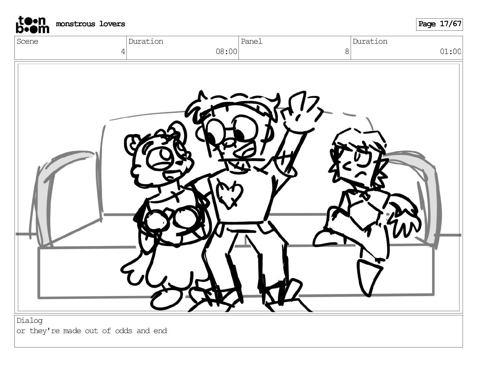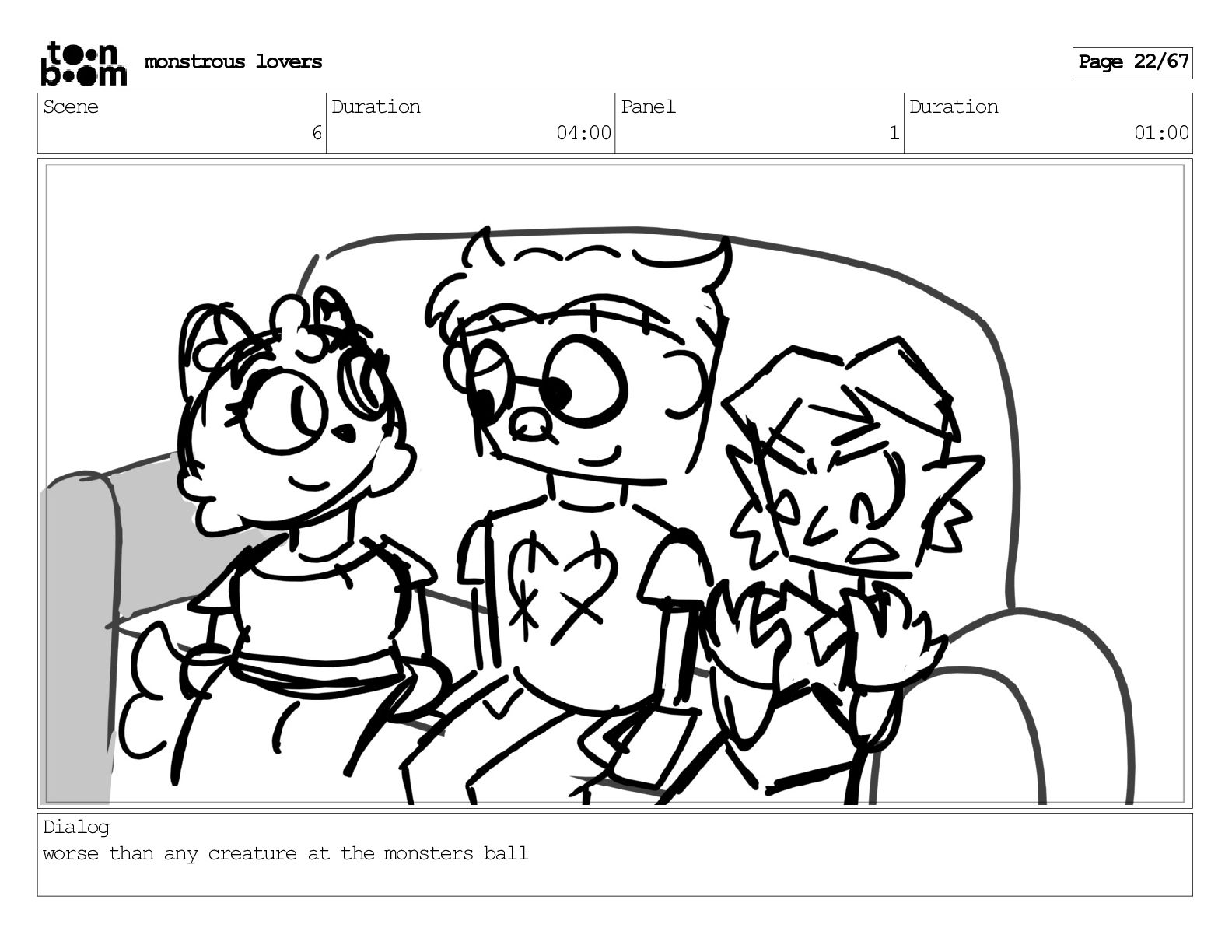 Scene 16 Duration 12:00 Panel 2 Duration 01:00 Dialog monstrous