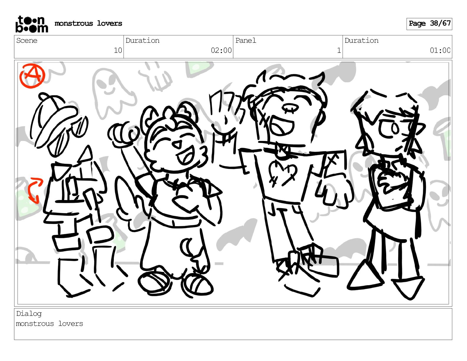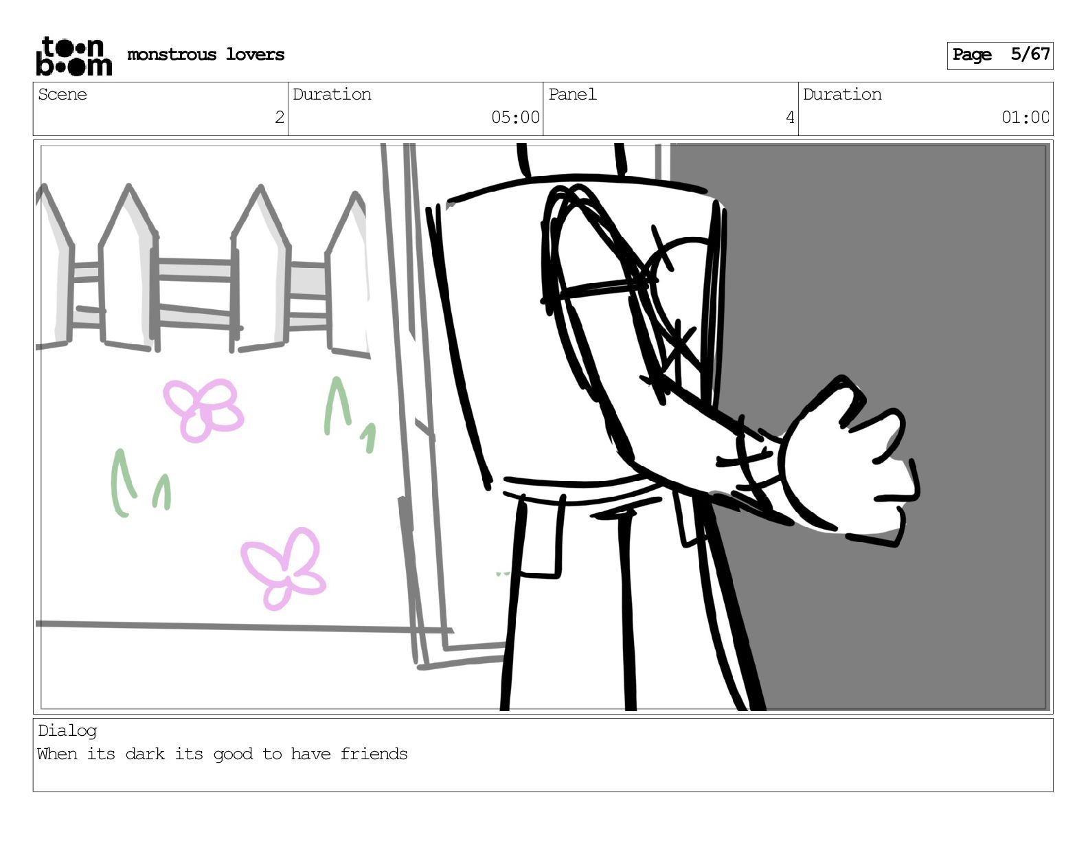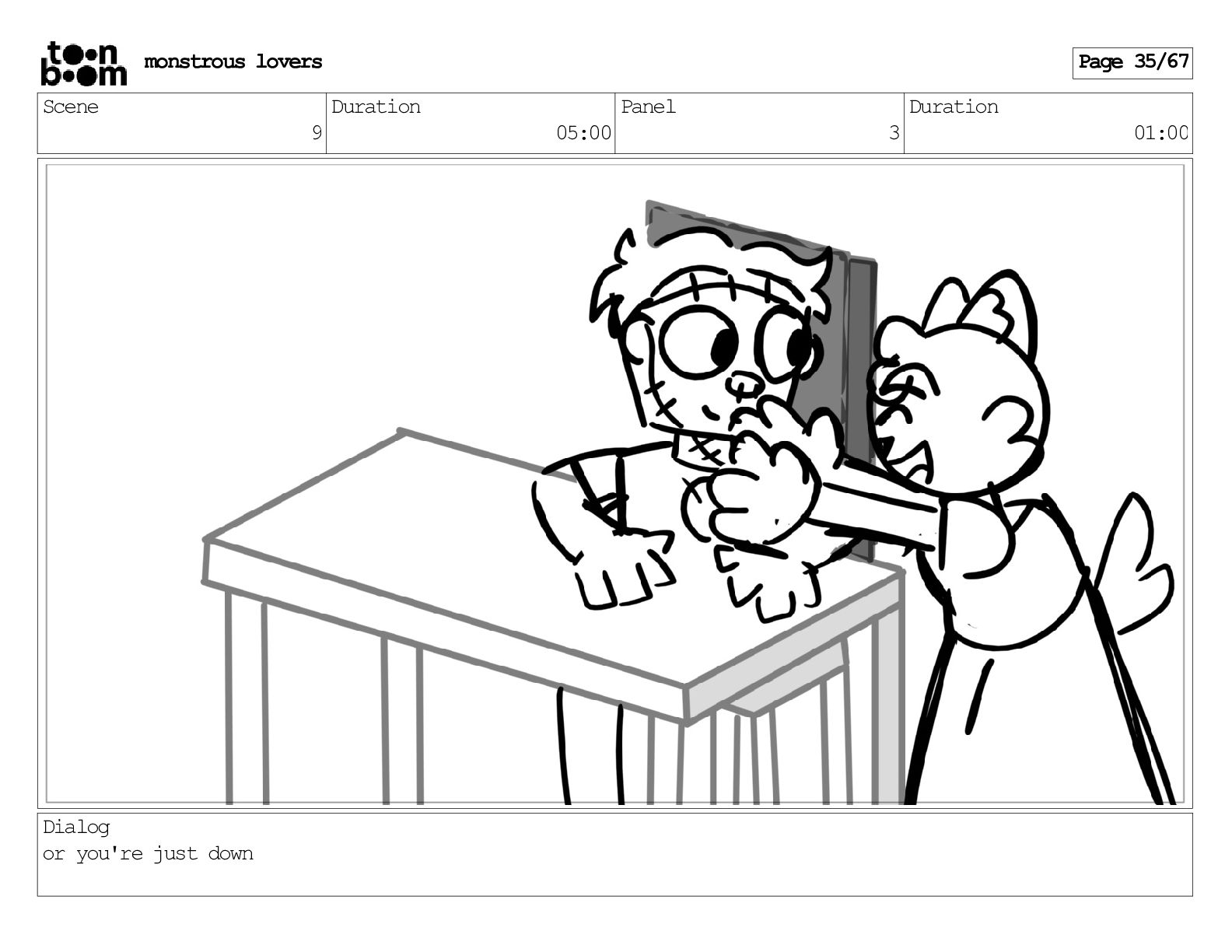 Scene 10 Duration 02:00 Panel 1 Duration 01:00 Dialog monstrous