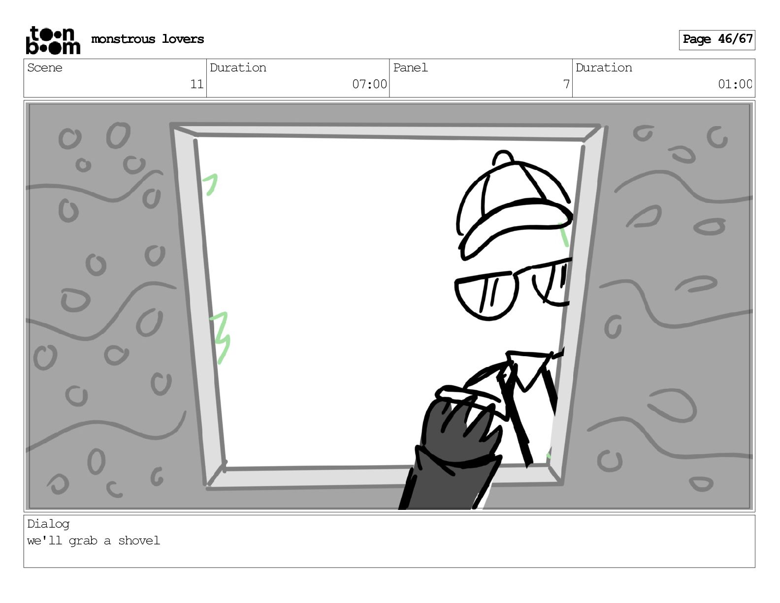 Scene 11 Duration 07:00 Panel 7 Duration 01:00 Dialog we'll
