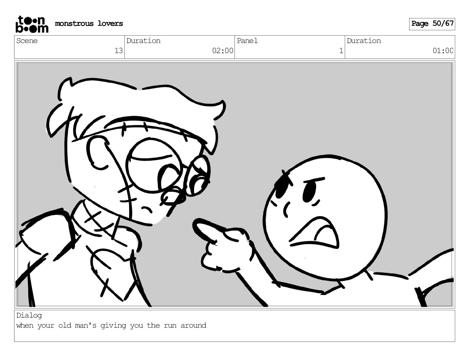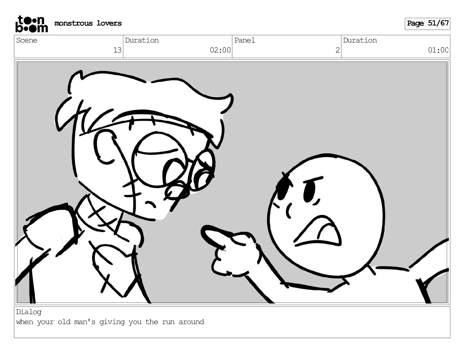 Scene 13 Duration 02:00 Panel 2 Duration 01:00 Dialog when