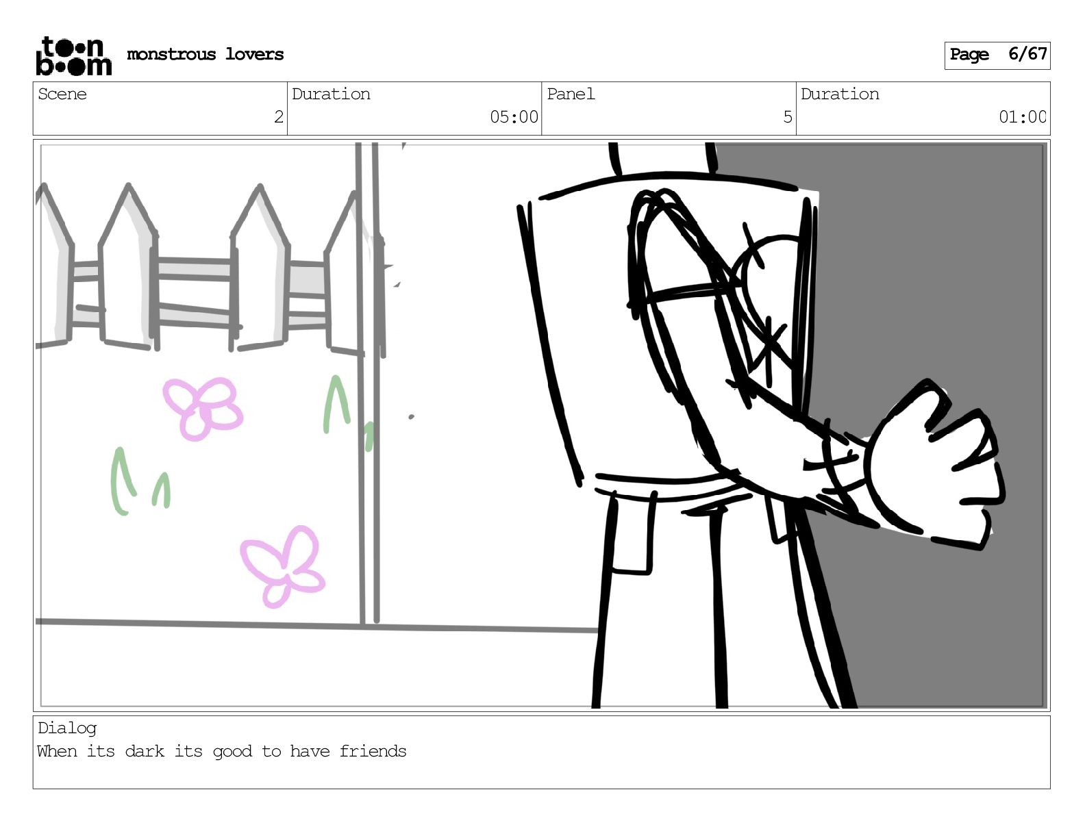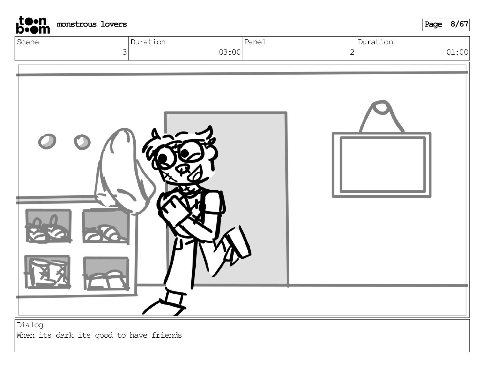 Scene 8 Duration 02:00 Panel 2 Duration 01:00 Dialog monstrous