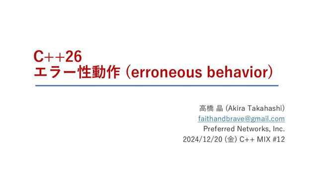 C++26 エラー性動作 (erroneous behavior) 高橋 晶 (Akira Takahashi)