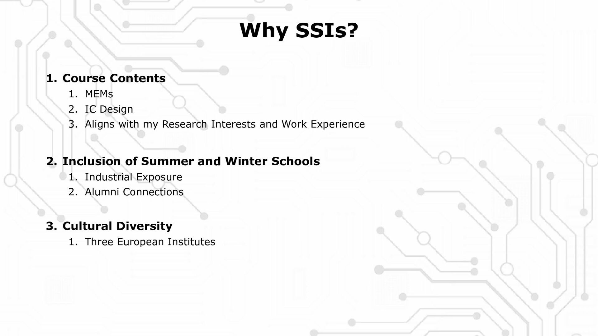 3. Aligns with my Research Interests and Work Experience 2. Inclusion of Summer and Winter Schools 1. Industrial Exposure 2. Alumni Connections 3. Cultural Diversity 1. Three European Institutes