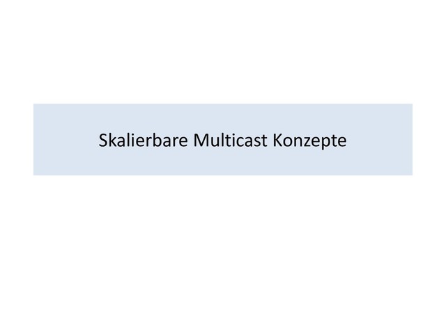 (1989) [2] Hinden, R.; Nokia; Deering, S.; Cisco Systems: IP Version 6 Addressing Architecture. RFC-4291 (2006) 5 [3] Ballardie, A.: Core Based Trees (CBT) Multicast Routing Architecture. RFC- 2201 (1997) [4] Blazevi´c, L.; Boudec, J.Y.: Distributed Core Multicast (DCM): a multicast routing protocol for many groups with few receivers. Newsletter ACM SIGCOMM Computer Communication Review, Volume 29 Issue 5, October 1999, 6-21. [5] Wong, T.; Katz, R.: An Analysis of Multicast Forwarding State Scalability. Network Protocols, 2000. Proceedings. 2000 International Conference on (2000) 105-115. [6] Song, S.; Zhang, Z.L.; Choi, B.Y.; Du, D.: Protocol Independent Multicast Group Aggregation Scheme for the Global Area Multicast. Global Telecommunications Conference, 2000. GLOBECOM ’00. IEEE (Volume: 1) 370-375. [7] Minoli, D.: Multicast Addressing for Payload. In: IP Multicast with Applications to IPTV and Mobile DVB-H pp. 26-38. Wiley-IEEE Press, ISBN: 9780470260876. (2008) [8] Stoica, I.; Eugene Ng, T.S.; Zhang, Hui: REUNITE: A Recursive Unicast Approach to Multicast. INFOCOM 2000, Nineteenth Annual Joint Conference of the IEEE Computer and Communications Societies. Proceedings, IEEE (Volume:3) (2000) 1644-1653. [9] Boudani, A.; Cousin, B.: An hybrid explicit multicast/recursive unicast approach for multicast routing. Journal Computer Communications, Volume 28 Issue 16, October 2005, 1814-1834. [10] Cain, B.; Cereva Networks; Deering, S.; Kouvelas, I.; Cisco Systems; Fenner, B.; AT&T Labs - Research; Thyagarajan, A.; Ericsson: Internet Group Management Protocol, Version 3. RFC-3376 (2002) [11] Vigfusson, Y.; Abu-Libdeh, H.; Balakrishnan, M.; Birman, K.; Tock, Y.: Dr. Multicast: Rx for Data Center Communication Scalability. EuroSys’10 Proceedings of the 5th European conference on Computer systems (2010) 349-362. [12] Kotani, D.;Suzuki, K.; Shimonishi, H.: A Design and Implementation of OpenFlow Controller Handling IP Multicast with Fast Tree Switching. IEEE/IPSJ 12th International Symposium on Applications and the Internet (2012) 60-67. [13] Open Networking Foundation: OpenFlow Switch Specification, Version 1.3.0, June 25, 2012. 18.07.2013 Im Rahmen des Studienprojekts HP-MOM. Präsentiert von Fabian Keller. Universität Stuttgart 31